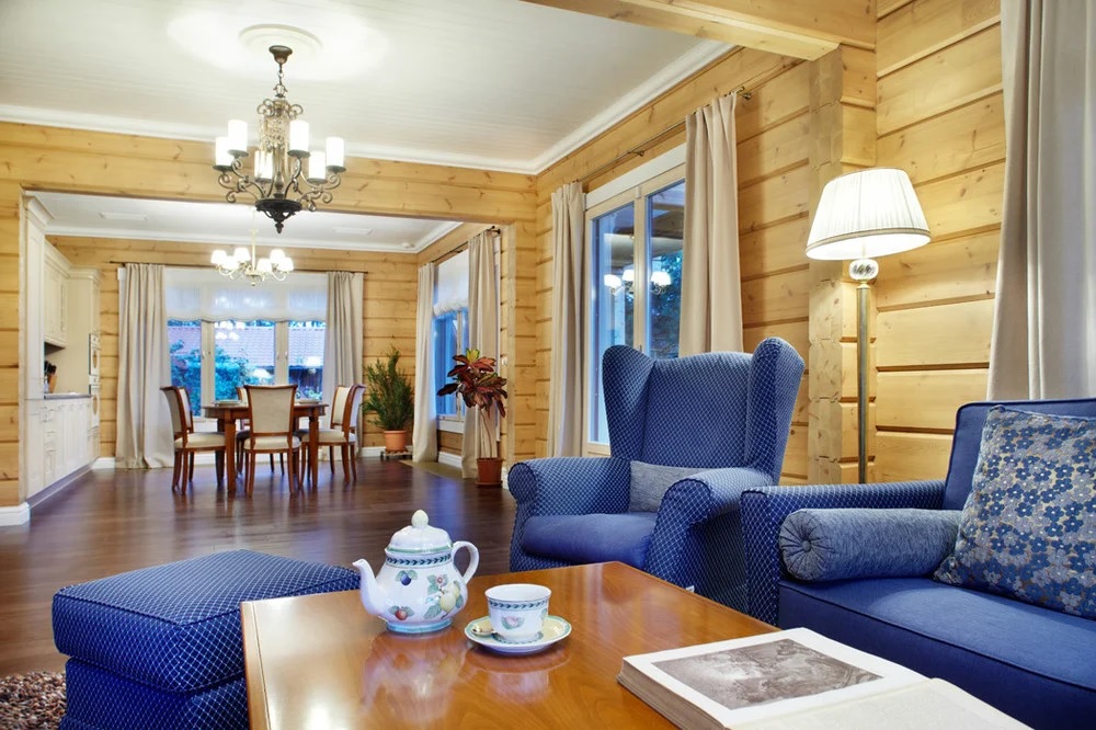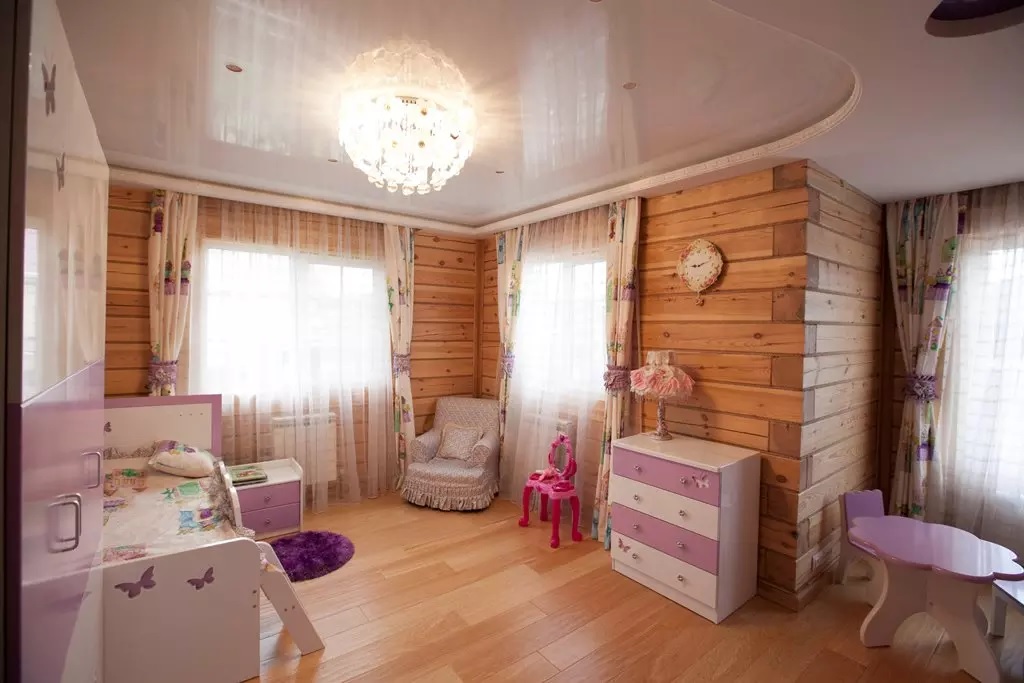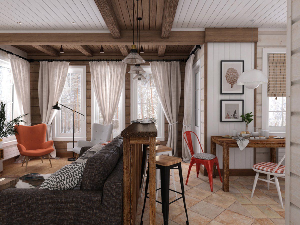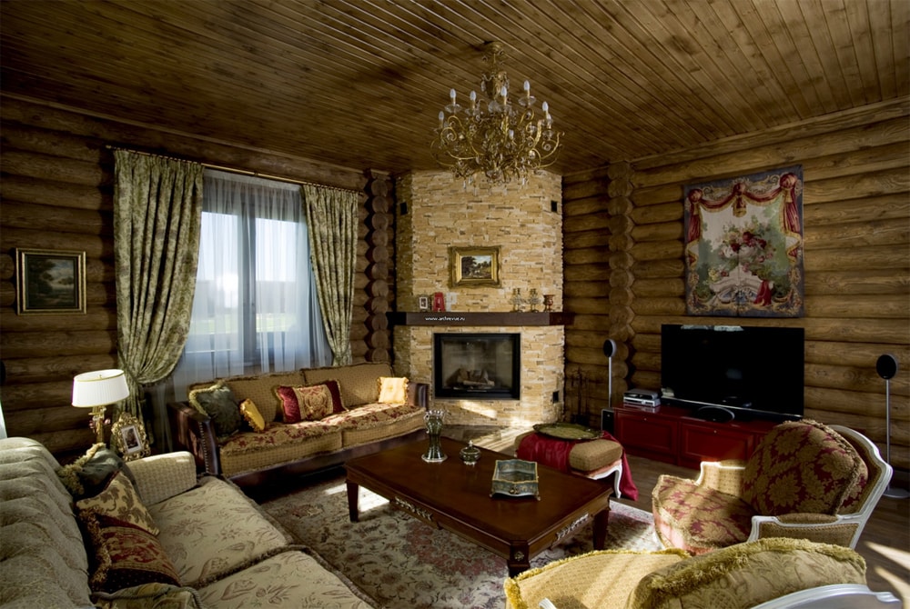 En una casa de madera, puede crear casi cualquier interior. Los materiales y acabados naturales serán la base de una gran cantidad de ideas de diseño. Para diseñar cada habitación, puede usar una técnica separada y su propia orientación estilística.