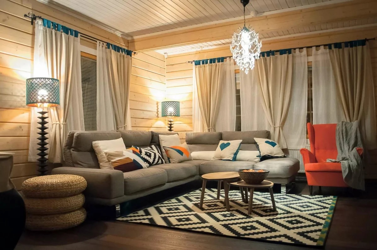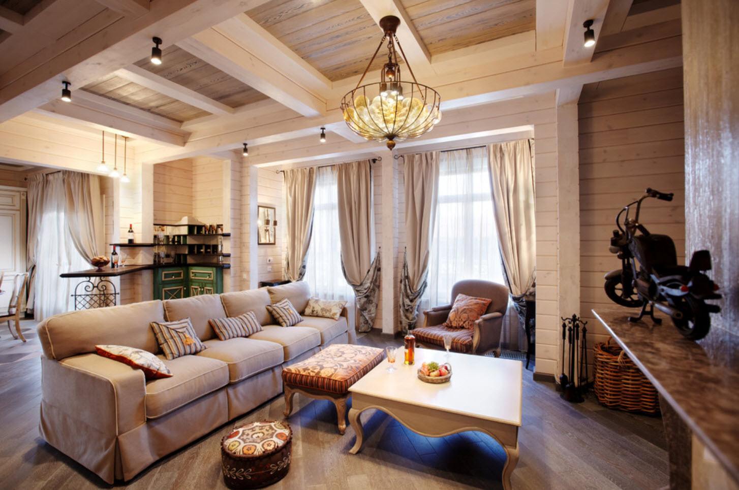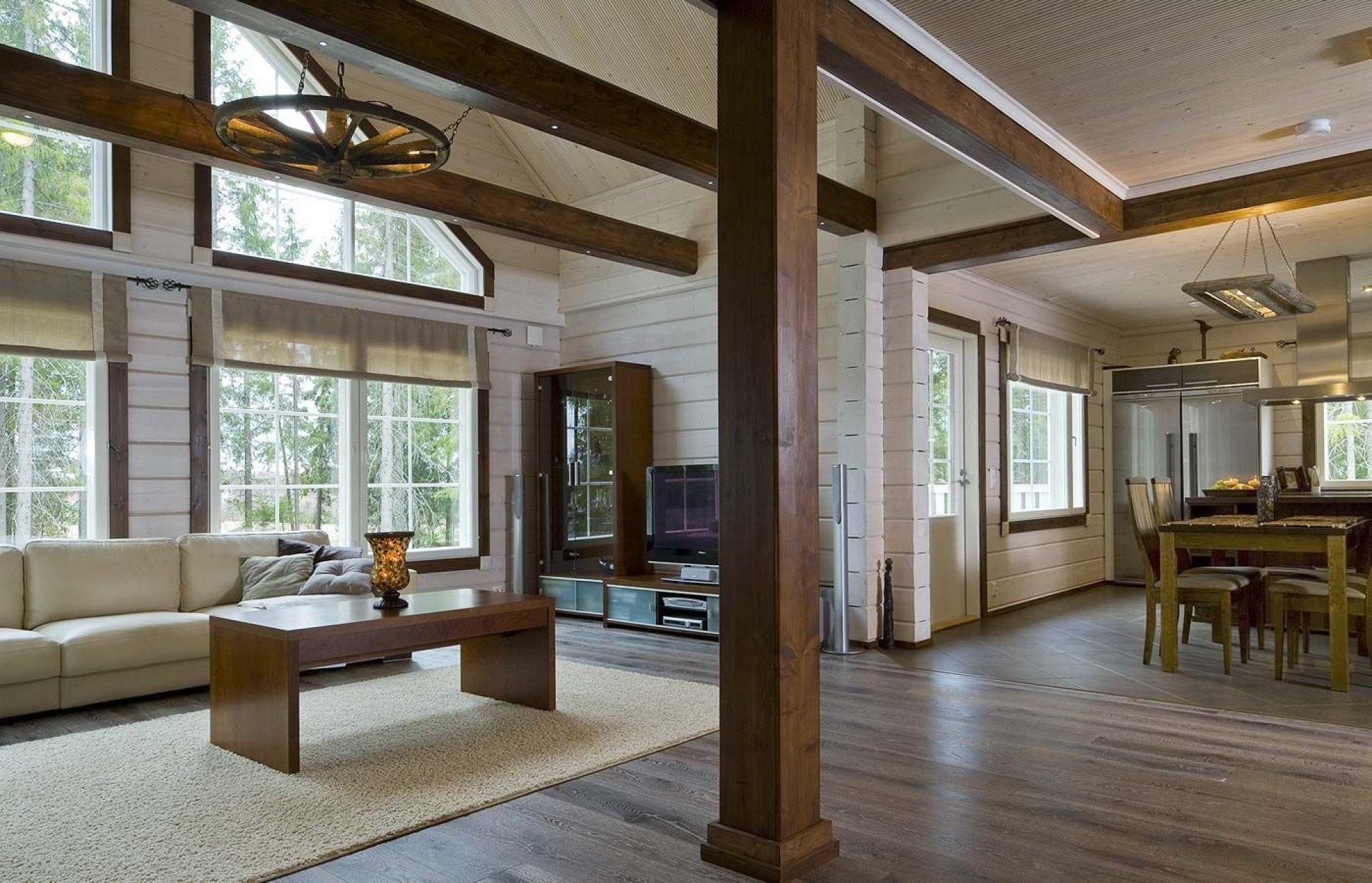 En una casa de madera, puede crear casi cualquier interior. Los materiales y acabados naturales serán la base de una gran cantidad de ideas de diseño. Para diseñar cada habitación, puede usar una técnica separada y su propia orientación estilística.