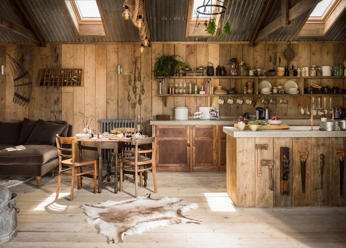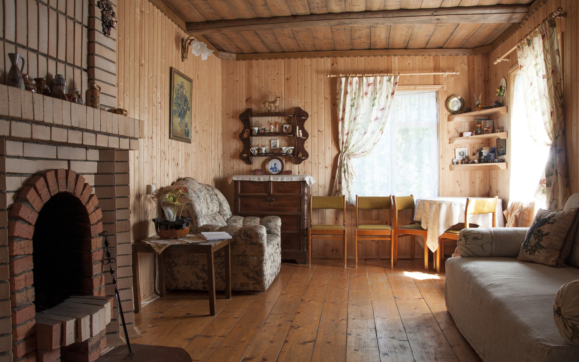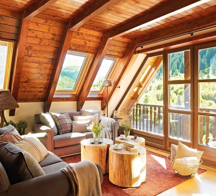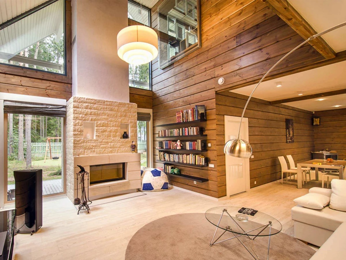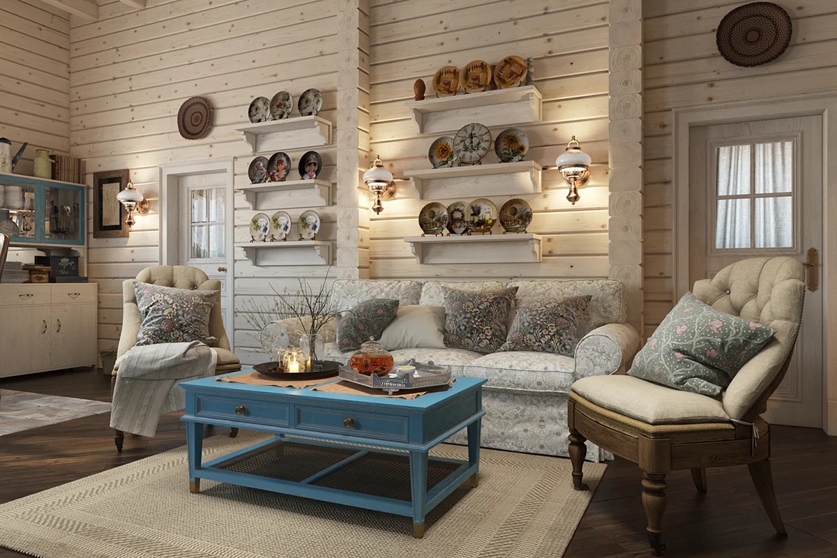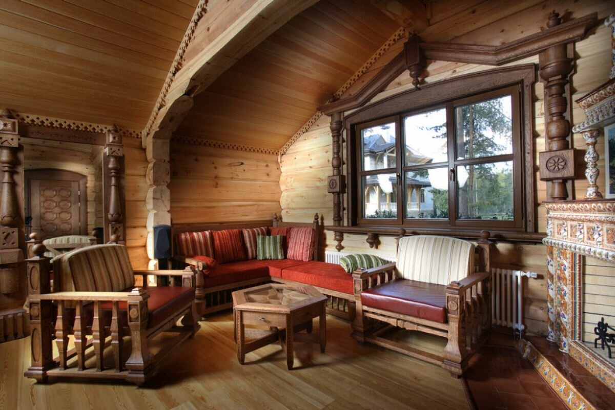 Qué elementos decorativos se utilizan en el interior de una casa de madera.