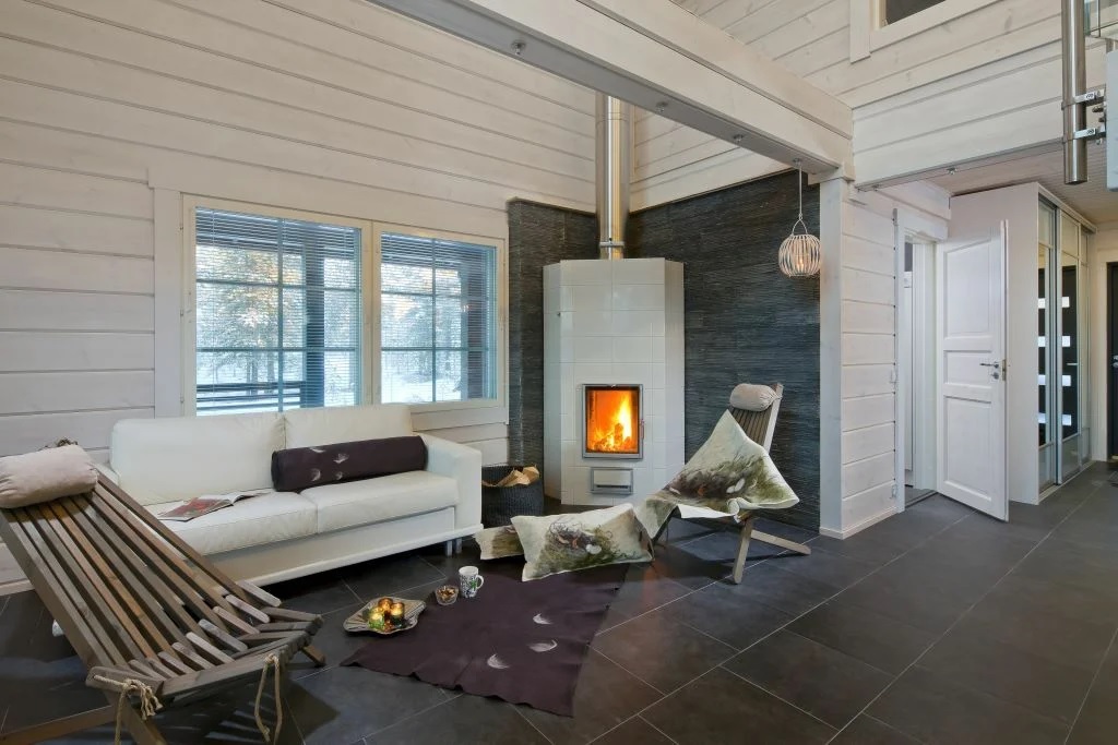 En el interior finlandés, el minimalismo es bienvenido. Los muebles solo se usan necesarios y están hechos de materiales de alta calidad. Las habitaciones están llenas de camas funcionales con cajones de lino incorporados, sofás plegables y sillones. La estufa finlandesa es imprescindible. Está decorado con patrones tradicionales.