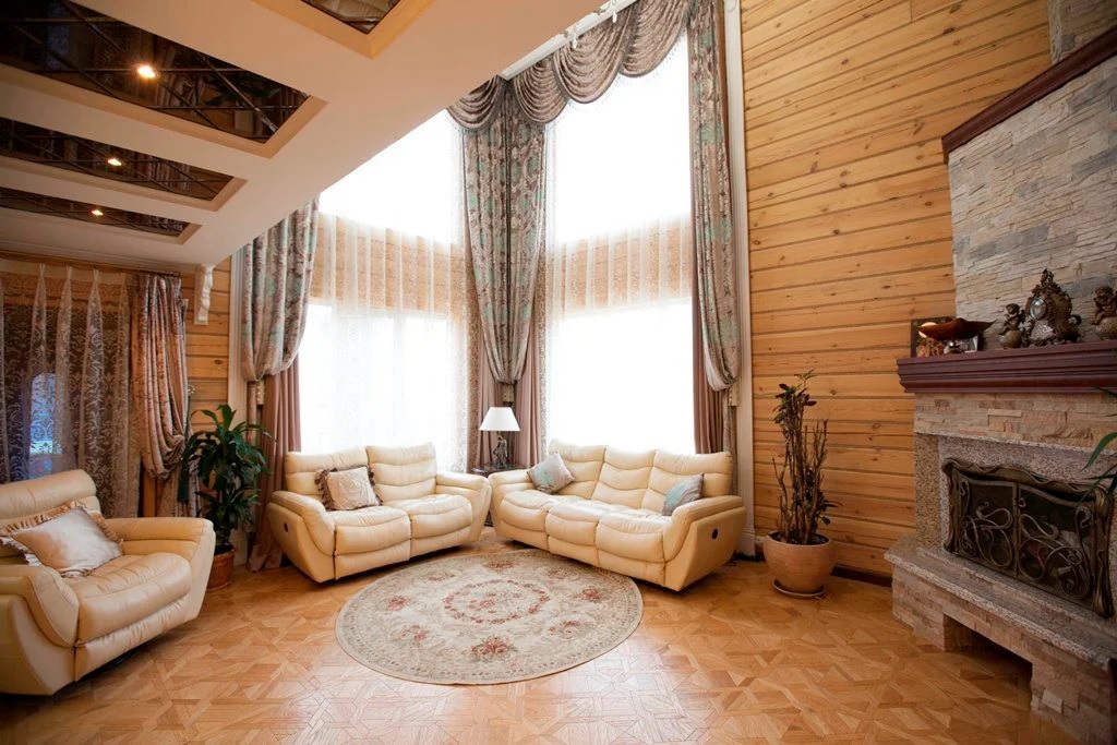 La decoración interior de cualquier edificio debe estar hecha del material más ligero. Por lo tanto, los paneles utilizados en las habitaciones no tendrán un efecto significativo en la base, no aumentarán la carga. Al elegir materiales para el trabajo interior, se debe considerar el futuro diseño interior. Las paredes de la cabaña de troncos desde el interior solo se pueden barnizar. Las paredes de madera hechas de especies caras y de alta calidad estarán en perfecta armonía con piedra artificial, aglomerado y plástico.