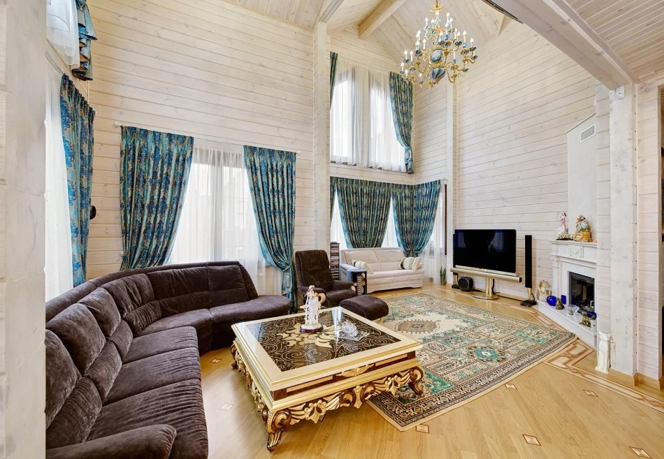 El diseño interior de una casa de madera puede ser variado y original. No es necesario dejar a la vista vigas de roble, troncos y otros elementos. Se pueden ocultar detrás de molduras de yeso y paneles decorativos. Usando los talleres disponibles con diseñadores de fotos y videos, puede hacer la mejora del hogar o la cabaña usted mismo.
