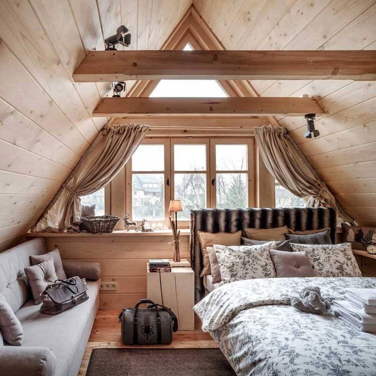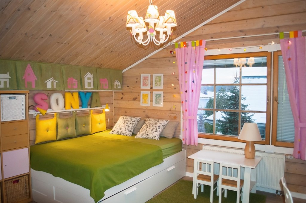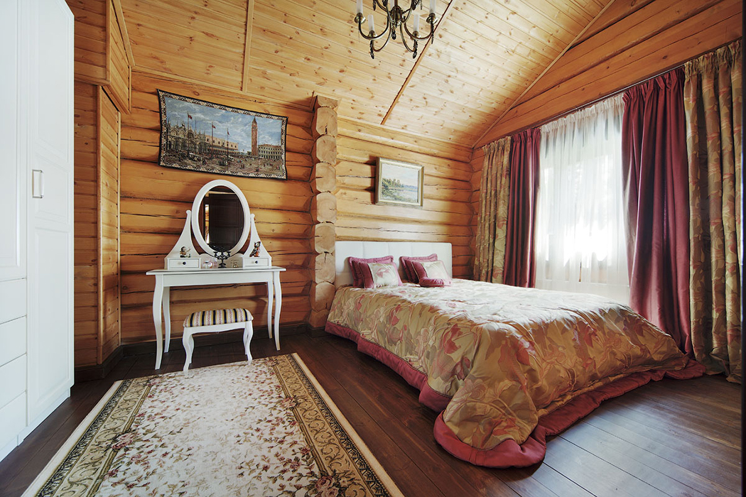 Ejemplos de decoración de habitaciones en una casa de madera.