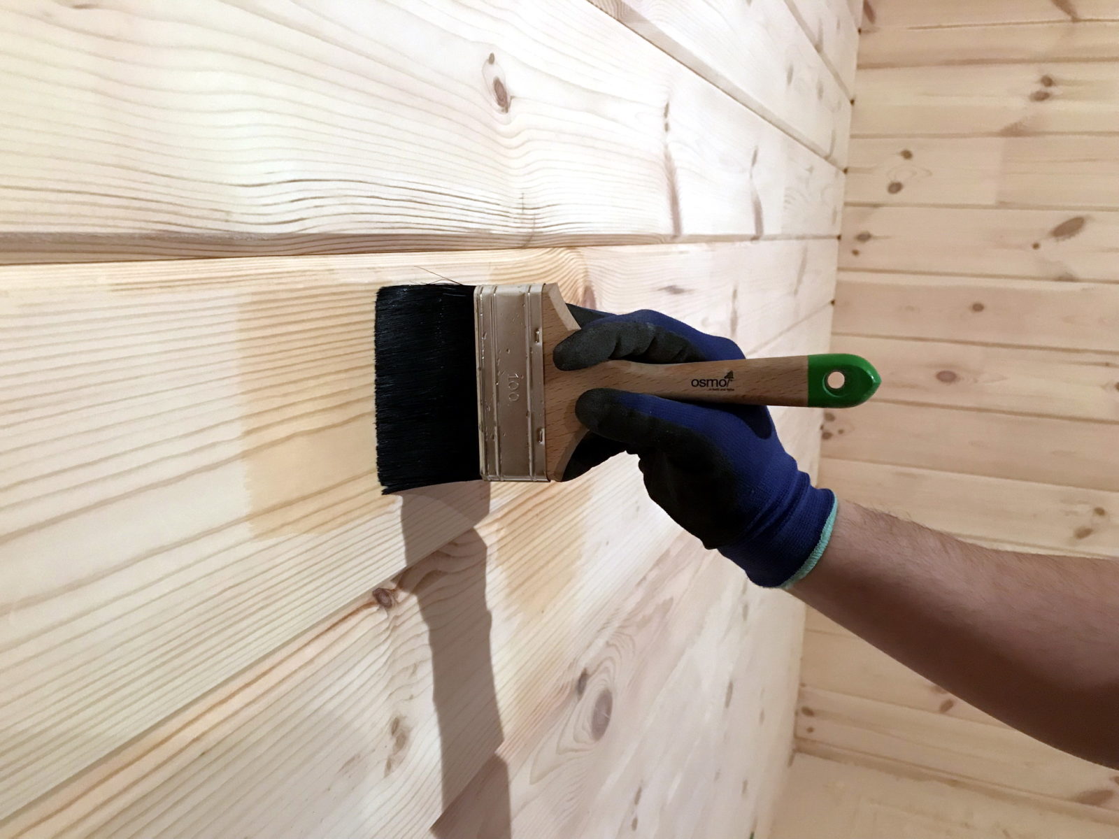 Aplicación de barniz. De esta manera, puede preservar completamente la estructura, enfatizar la textura de la casa de troncos, resaltar patrones naturales y crear un tono hermoso.