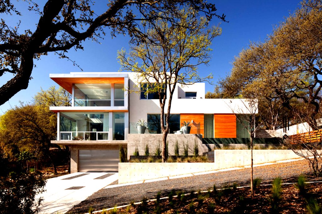 El proyecto de diseño de la casa de campo en un estilo moderno es penetrado por el laconismo, que a su vez da lugar a una belleza multifacética. Las necesidades de una persona de nuestra era son muy diferentes de las necesidades de sus antepasados.Incluso el concepto mismo de "bello" tiene un significado completamente diferente. Por un lado, el edificio debe ser lo más innovador posible, es decir, equipado con la última tecnología. Sin embargo, esto no excluye en absoluto la presencia de elementos tradicionales en el diseño del paisaje (jardines de infancia, cenadores, estanques decorativos). El estilo moderno se caracteriza por un flujo suave del interior hacia el exterior. El efecto se logra mediante el uso de ventanas panorámicas en el piso, que abren el velo de secreto del interior. La "transparencia" no solo permite demostrar las características del interior, sino que también permite que entre más luz y aire en las habitaciones. Para las grandes casas privadas, el problema no parece relevante, pero una persona moderna literalmente busca espacios ilimitados, tratando de borrar cualquier límite. La fachada de la casa está terminada con tablilla, enlucida o forrada con ladrillo decorativo, piedra. Una decoración similar combinada con amplios ventanales y un patio limpio se ve completamente diferente que en los estilos clásicos. El límite entre las paredes y los cimientos también se borra parcialmente. En colores, intentan recurrir a tonos neutros y naturales: gris, blanco, marrón, negro. Además, el uso de líneas rectas, esquinas afiladas y formas geométricas (principalmente rectángulos y cuadrados) en el exterior es característico del estilo moderno. Crea la ilusión de una fachada modular, como si estuviera ensamblada a partir de diferentes elementos.