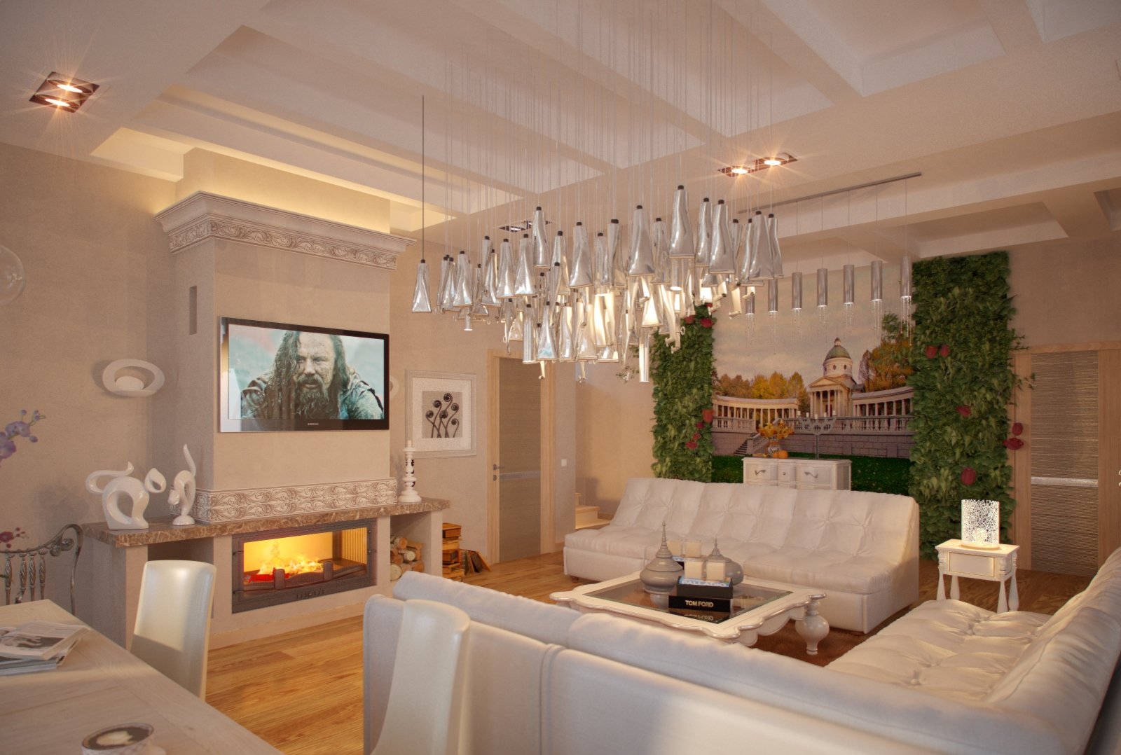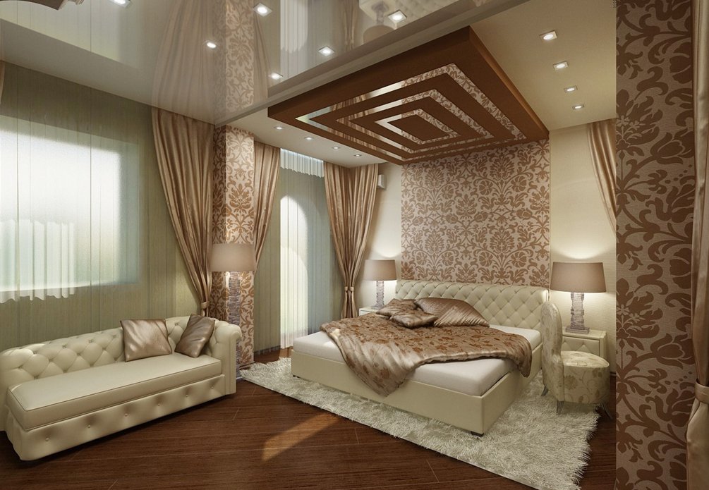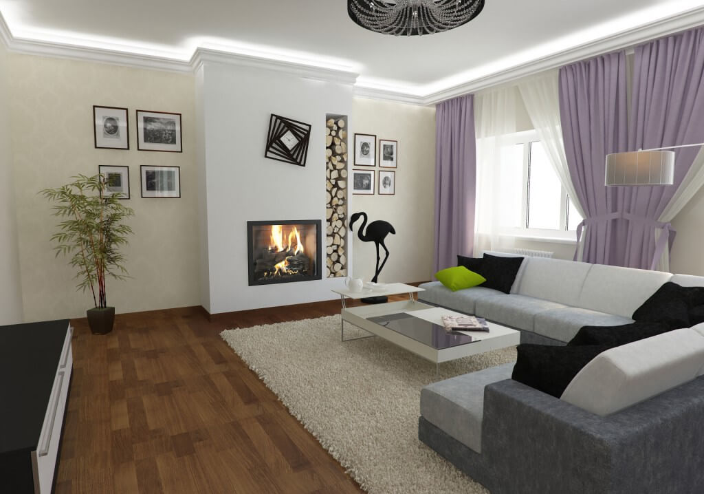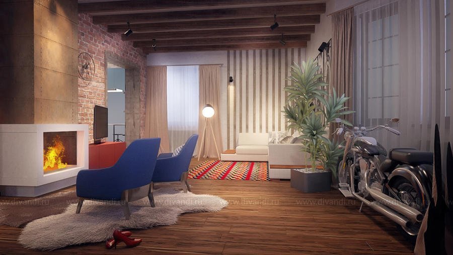 En el dormitorio encarnan uno de los estilos exquisitos (clásico, loft, moderno). Dado que la sala generalmente difiere en grandes dimensiones, se divide condicionalmente en varias zonas funcionales: