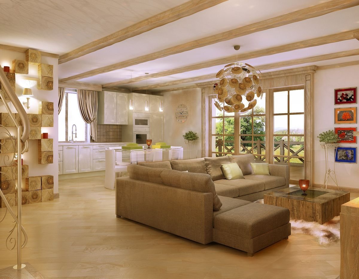 El interior de la casa juega el mismo papel importante que el exterior. Si este último se encuentra con los invitados y llama la atención de los transeúntes casuales, la decoración interior se considera más íntima. No se muestra a todos, por lo que puede apartarse un poco de los estrictos cánones de estilo en favor de la comodidad del hogar y un ambiente relajado. Terminar y amueblar la casa con sus propias manos es un trabajo de varias etapas y difícil. Antes de comenzar a planificar, buscar soluciones interiores y comprar muebles, debe hacer un plan o proyecto de diseño. Desarrollarlo sobre la base de un cierto estilo, que se elige con anticipación. Entre las opciones más populares cabe destacar: