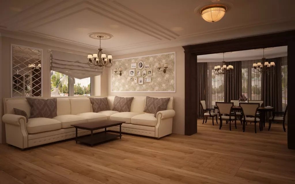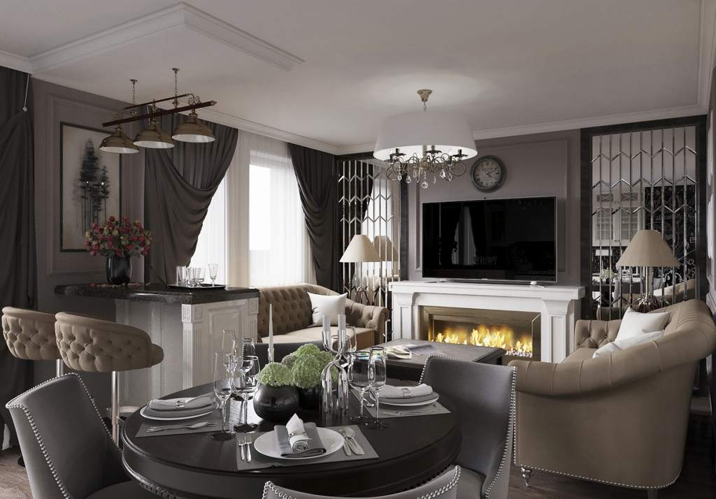Art Decó.Estilo americano, caracterizado por una elegancia simple. El interior utiliza tonos pastel para el fondo y solo un área de acento brillante. En muchos sentidos, la dirección es similar a la versión "lite" del estilo clásico. Es más elegante y ordenado, desprovisto de un montón de pequeños detalles, pero al mismo tiempo logró mantener un toque de lujo.