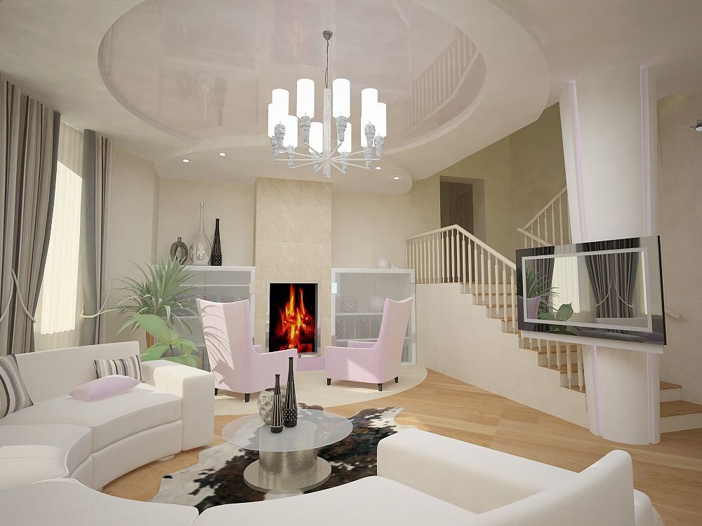 Sala de estar: el centro condicional de cualquier hogar y el nodo principal de "transporte". Si su atmósfera respira comodidad, entonces toda la casa y los invitados se reunirán en la habitación. Como regla general, la sala de estar tiene varios ventanales que están equipados con lugares convenientes para leer libros o admirar las bellezas de los alrededores con una taza de té. Los espaciosos salones se pueden decorar en colores oscuros, lo que dará profundidad a la habitación. La gama de café y chocolate se ve espectacular, enfatizando el lujo de la atmósfera con suaves tonos de tonos. Una gran solución es instalar una chimenea real. Si en los apartamentos hay que contentarse con sus imitaciones, entonces el campo ofrece una buena oportunidad para organizar un hogar. La proximidad del bosque producirá fácilmente leña para encender.