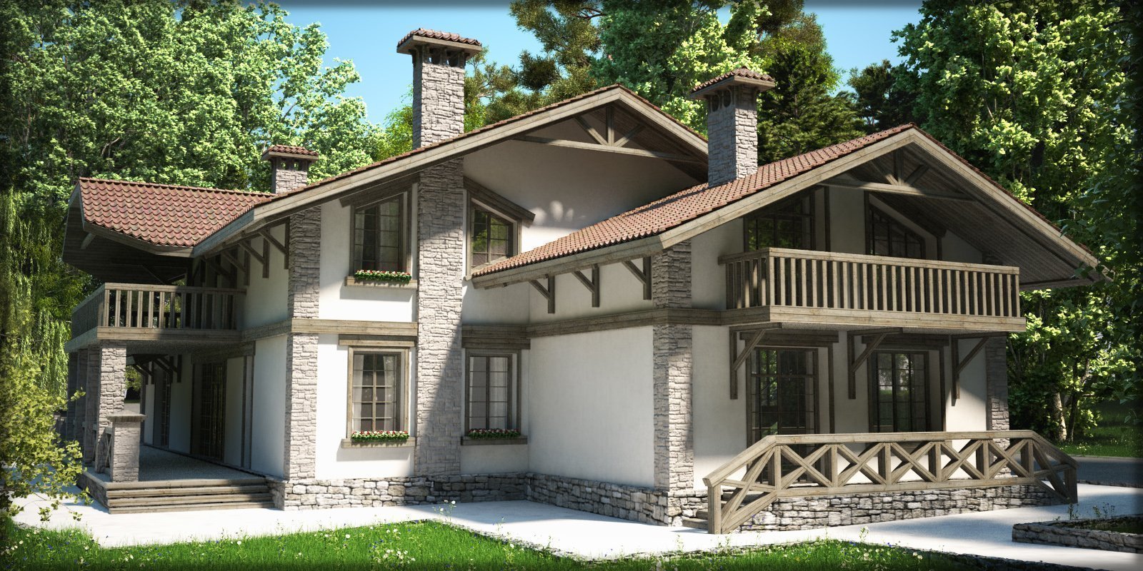El estilo del chalet apareció en las laderas alpinas. De hecho, es un destino de pueblo. Las cabañas de estilo chalet están construidas de madera. Además, se caracterizan por el uso de ventanas panorámicas. En los Alpes, de esta manera, los huéspedes disfrutan de las vistas de la pintoresca belleza circundante. La cabaña debe incluir un amplio porche y una galería abierta o balcón en el segundo piso. Decora el sitio con la misma madera o tablones finos de madera. Combinación orgánica de madera con piedra natural. El último se puede decorar con columnas o fachada. Se presta especial atención a la iluminación. El chalet ama la abundancia de luz artificial, en este estilo es similar a un loft, por lo que en la calle no puede limitarse a una linterna.