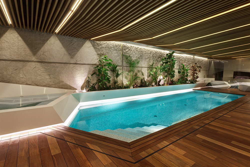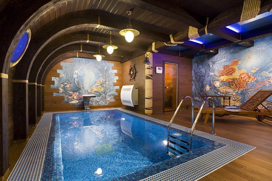 La piscina en un edificio residencial es un claro signo de la riqueza de los propietarios de la casa. Un edificio similar en la calle también enfatiza el estado de la familia, pero pierde significativamente al interno por la necesidad del cuidado sistemático y la limpieza de las hojas caídas y la basura de la calle. Además, los contenedores de agua en el patio se llenarán periódicamente con agua de lluvia, que naturalmente tendrá que bajarse. Quizás no haya mejor lugar para una piscina que el sótano o el sótano. Por lo general, se complementan con una sauna y fuentes, con un baño. Vale la pena considerar que la composición de esta compleja estructura de ingeniería incluirá: