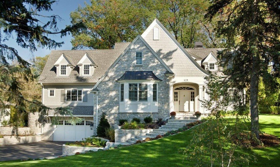 El exterior de la casa en el estilo inglés se caracteriza por el rigor y una pequeña cantidad de decoración. Al mismo tiempo, el estilo se divide en varias ramas que fueron relevantes en diferentes épocas.Para la dirección inglesa moderna, la presencia de paredes de ladrillo es característica. Si la cabaña ya se ha construido y el material se ha utilizado de manera diferente, entonces la casa se "pule" afuera usando acabados decorativos. La decoración principal es pesadas puertas de roble cubiertas con tallas hechas a mano. Incluso en la etapa de desarrollo del dibujo, agregue ventanas saledizas y ventanas con arcos de medio punto. Reflejan mejor el sabor británico. El estilo clásico inglés, que era popular en la época victoriana, se caracteriza por el uso de "relieve", fachadas complejas: parecen constar de muchos elementos que se presentan. La decoración prevalece tradicional para aquellos tiempos de talla. Las paredes están enlucidas desde el exterior. Si cavas aún más profundo durante el reinado de la dinastía Tudor, entonces en las fachadas de tales casas había vigas de madera (pisos). Las estructuras tenían techos agudos a dos aguas y estaban decoradas con mampostería. La opción es ideal para decorar una casa de campo con elementos de estilo "rural". Para inspirarse, encuentre una fuente de ideas, explore fotos de mansiones típicas inglesas.