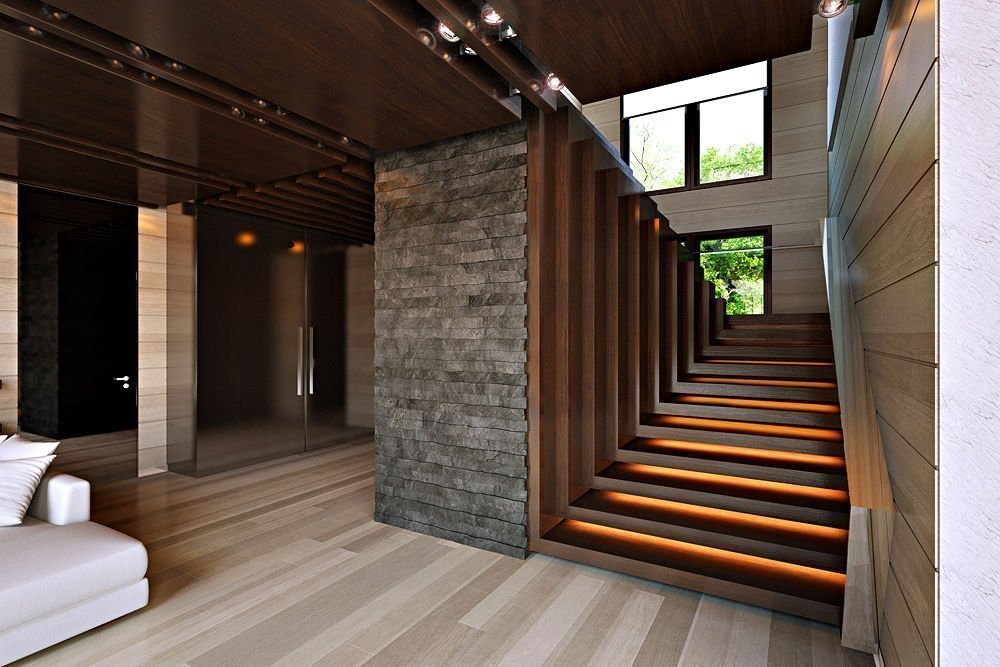 Iluminación de dos pisos y escaleras a la vez.