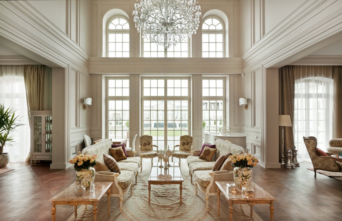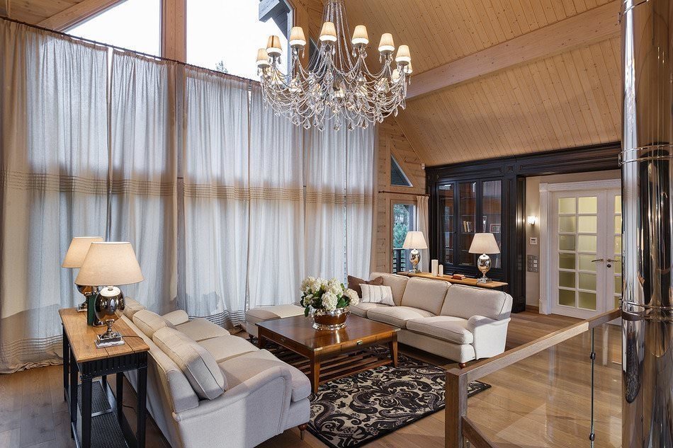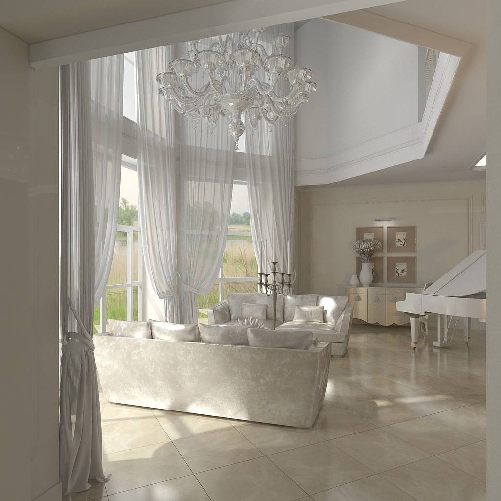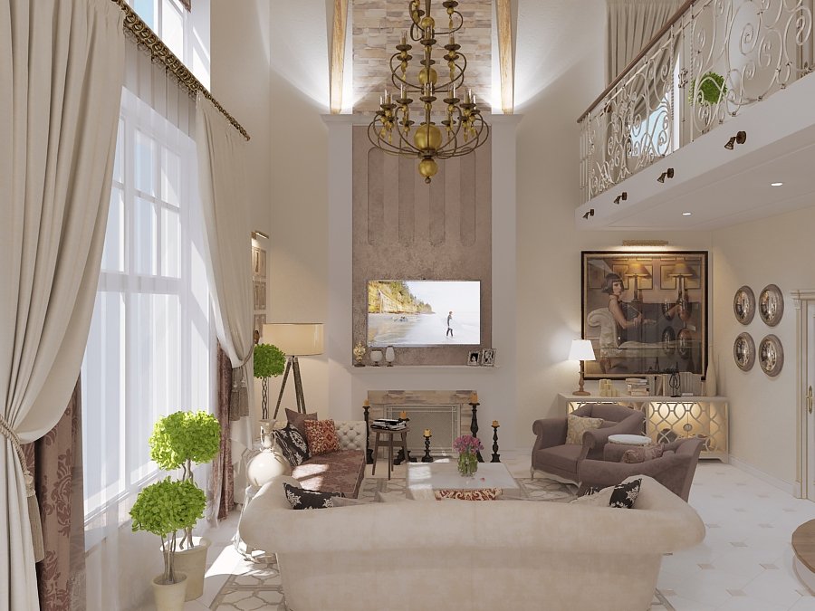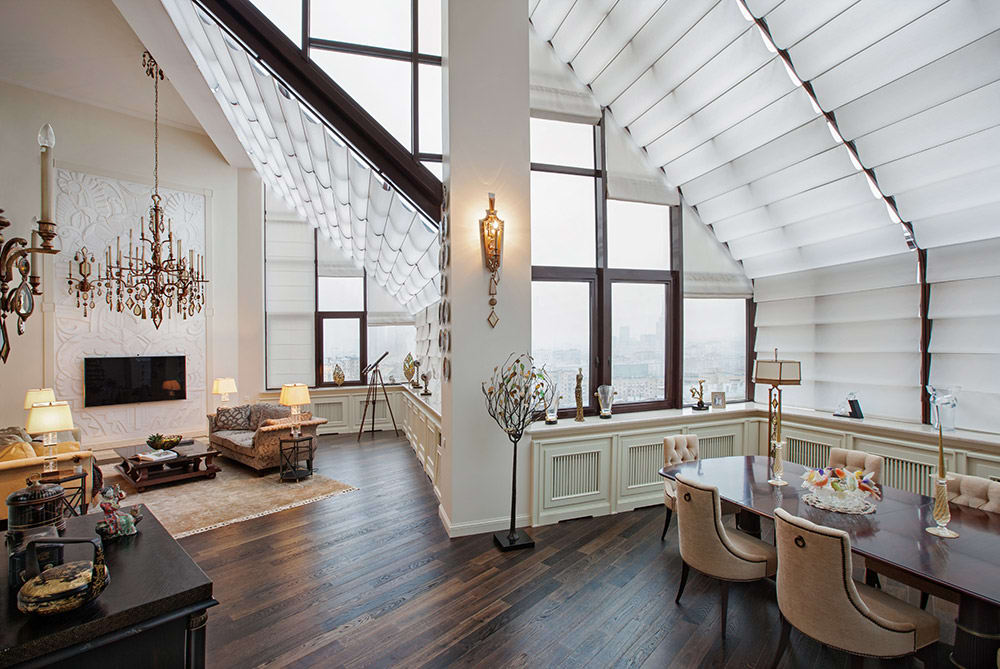 El clasicismo modernista, barroco y palaciego también se realiza perfectamente cuando se utiliza la segunda luz. Las dificultades pueden surgir solo con el minimalismo, ya que no utiliza muebles voluminosos, que es un atributo indispensable de una habitación con techos altos y grandes ventanales.