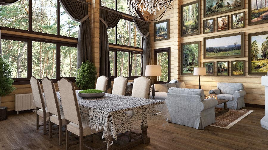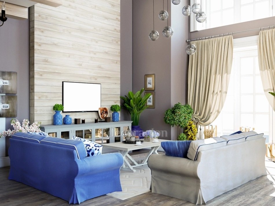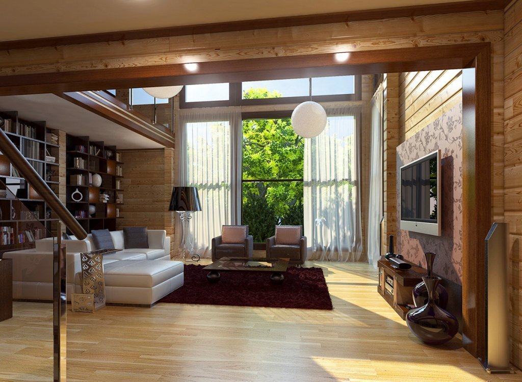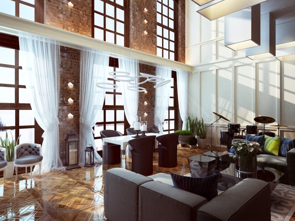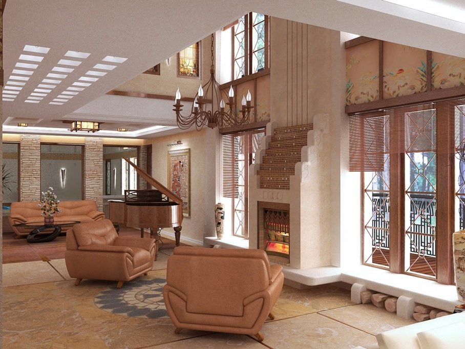El diseño de la casa con la presencia de una segunda luz abre grandes oportunidades para la estilización y la decoración. Una habitación grande puede acomodar áreas de relajación, trabajo, lectura y entretenimiento.