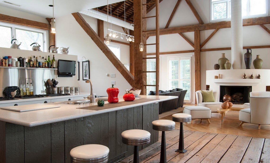 Rellene el espacio de las paredes con estantes y decoración para evitar el efecto de un área vacía y no residencial.