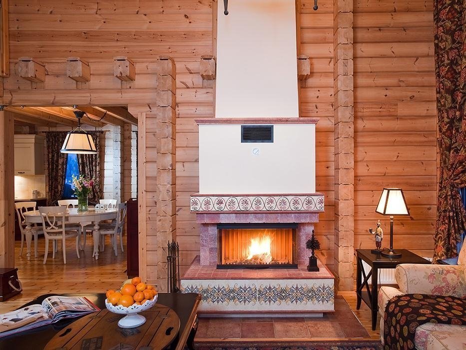 Las características de la producción de vigas encoladas permiten calentarse con el calor de una chimenea acogedora. La viga se trata con líquido, lo que reduce repetidamente la tendencia del árbol a encenderse. Por supuesto, al desarrollar un proyecto, el diseñador debe tener en cuenta no solo la estética, sino también el lado práctico del problema. La chimenea se está construyendo al mismo tiempo que la casa, porque también sienta las bases, si hablamos de una chimenea sólida y pesada. El diseño debe tener en cuenta la profundidad, la altura de la estructura, su resistencia y seguridad:
