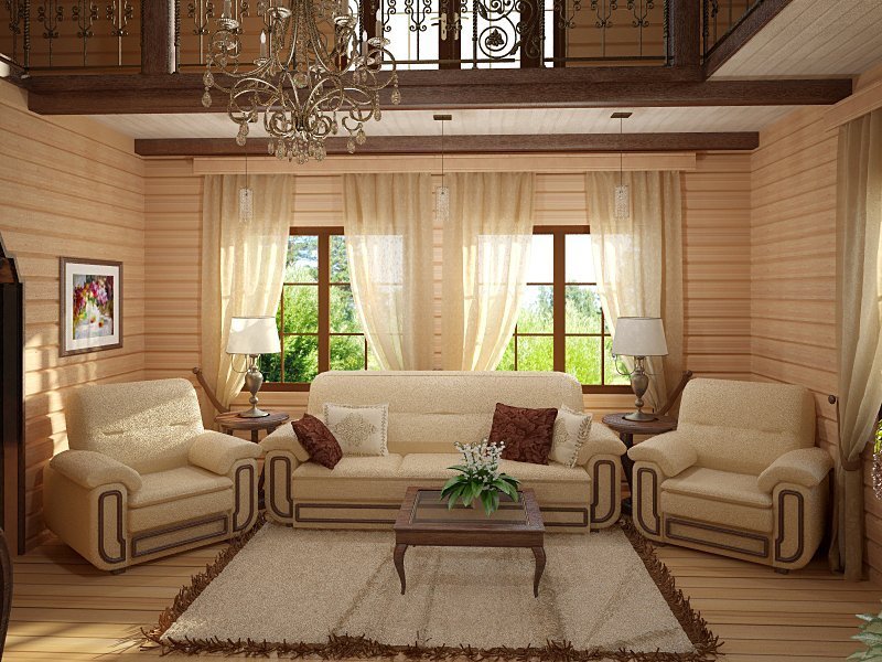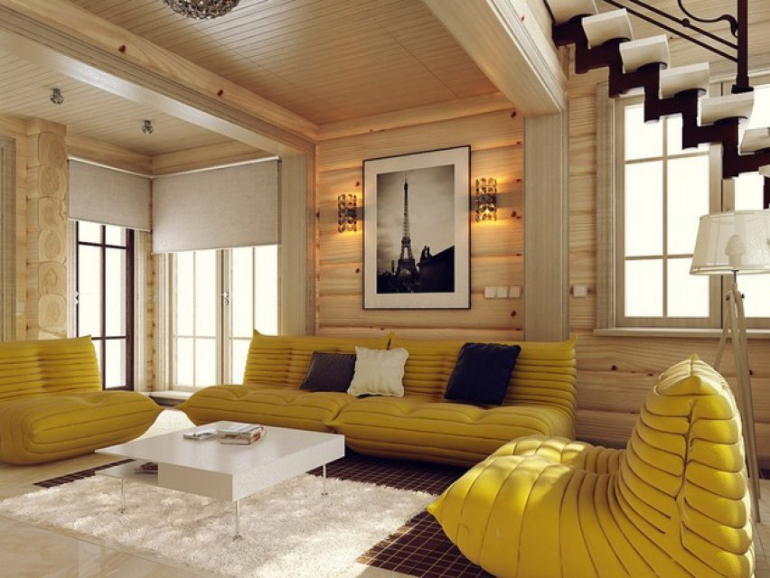 El interior de la casa a partir de vigas encoladas +50 fotos