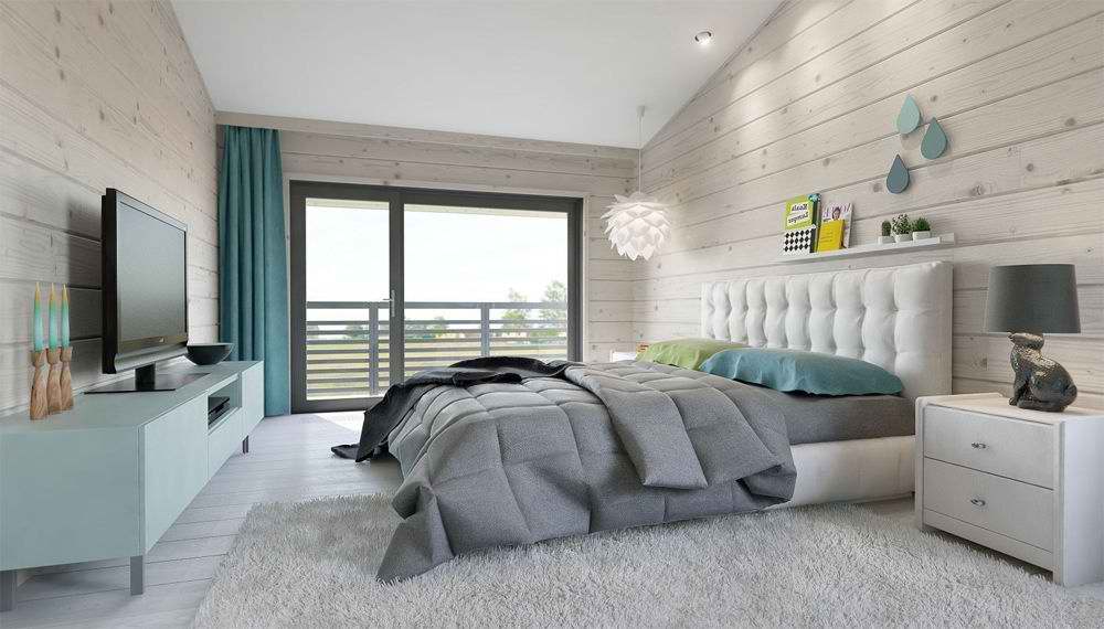 una buena solución sería diseñar ventanas panorámicas, llenarán la habitación con luz de la mañana y, por las tardes, podrá disfrutar del atardecer;