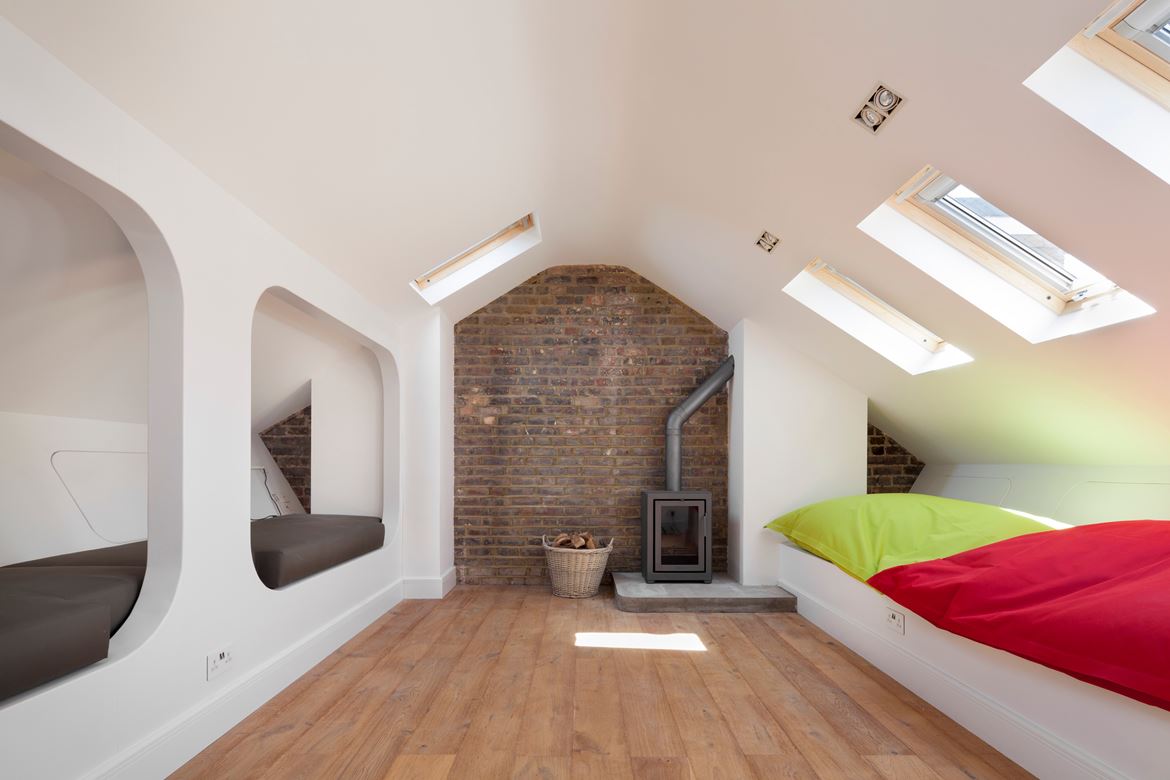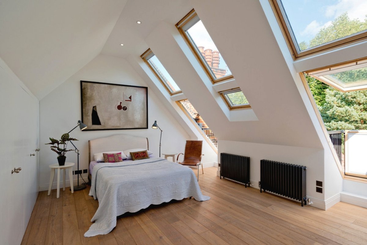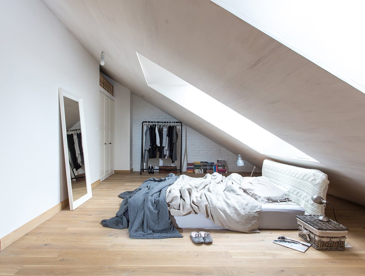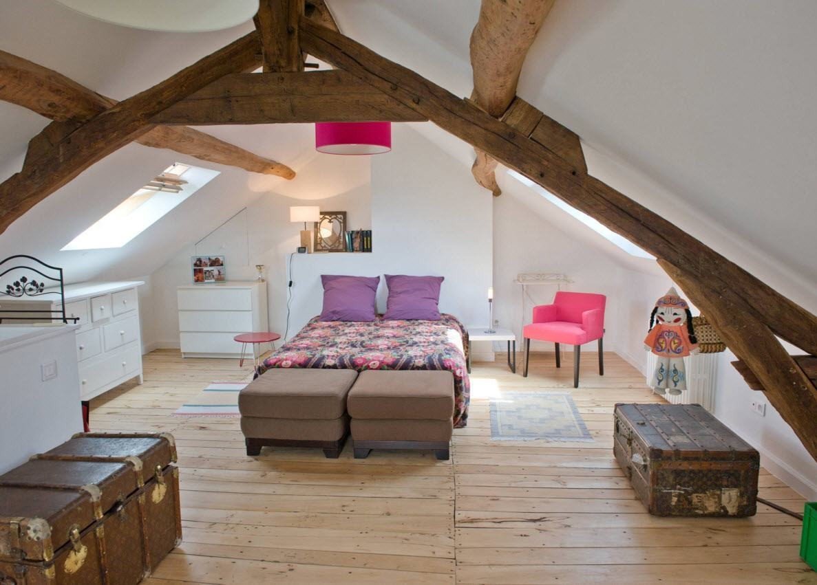 Techos inclinados. Al reducir el área utilizada, es difícil acercarse a una pared baja, se necesitarán muebles especiales para organizar el espacio interior.