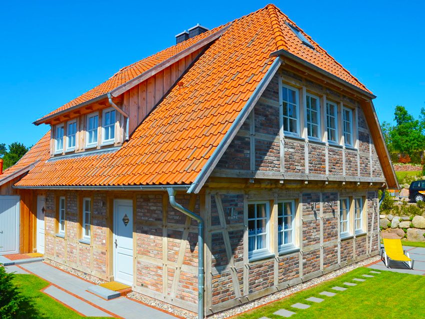 El área útil aumenta las partes inferiores, la parte superior empinada reduce el costo de los materiales para techos. Los techos altos en las habitaciones bajo ese techo dan una sensación de libertad y espacio.