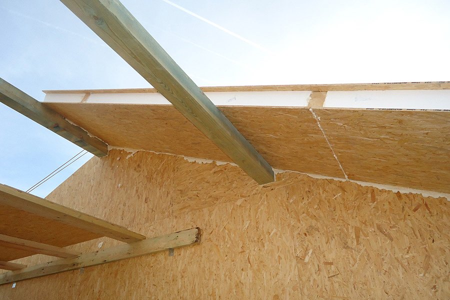 Se derriban vigas superpuestas que consisten en tres tableros, dos de los cuales tienen el mismo ancho que el mismo parámetro del edificio, y uno de ellos es 1 metro más ancho, sobresale 0,5 m de los lados.