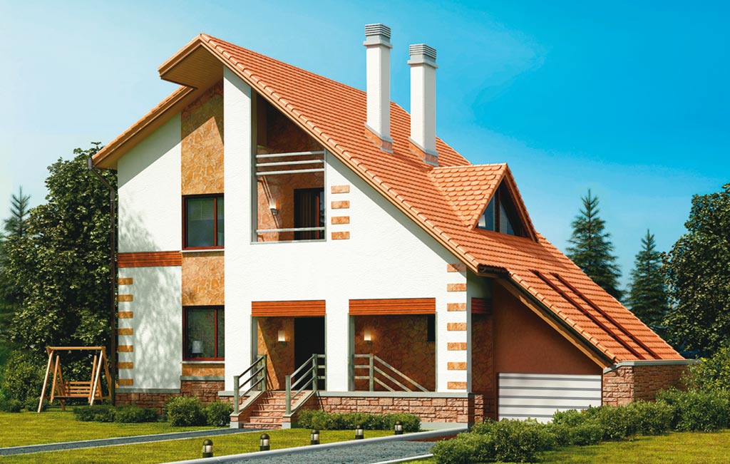 La opción de techo más común y económica. Es fácil de instalar y mantener. La forma tradicional es a dos aguas, adecuada para la construcción de un solo piso, se parece a un triángulo clásico.