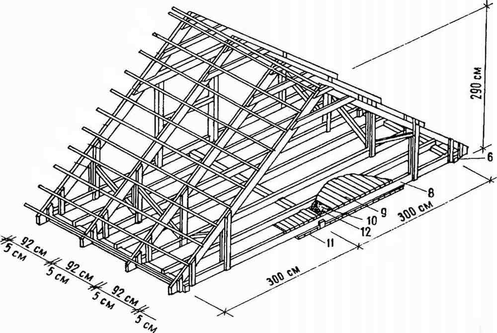 El sistema de techo tiene cuatro pendientes. Pueden ser iguales al techo de la tienda, idénticos en pares. En el primer caso, no será posible proporcionar acceso a la luz del día a través de las estructuras estándar de las ventanas; se requerirá la instalación de aberturas en el ático y lámparas antiaéreas.