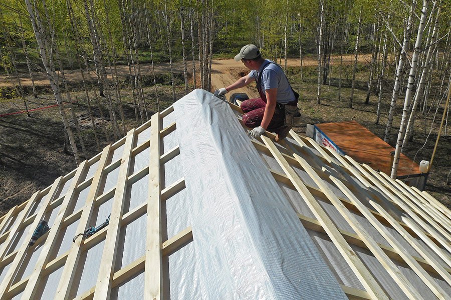El trabajo de instalación externa comienza después de colocar una capa de impermeabilización en las vigas. La instalación de los mostradores no causa dificultades, se unen con el mismo paso que las vigas. El enrejado se fija en la parte superior. Dependiendo del material de construcción utilizado para cubrirlo, está disponible de dos maneras: