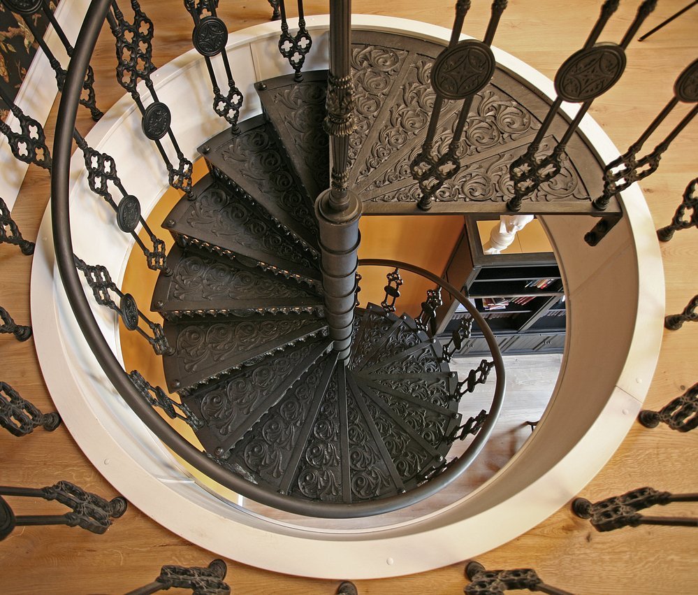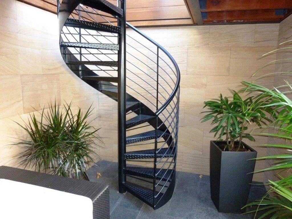 Las escaleras de caracol deben tener cercas. Para aumentar la seguridad, los pasos deben cubrirse con material antideslizante. La resistencia estructural dependerá del material de fabricación y tecnología. Utilice modelos forjados, soldados y fundidos.