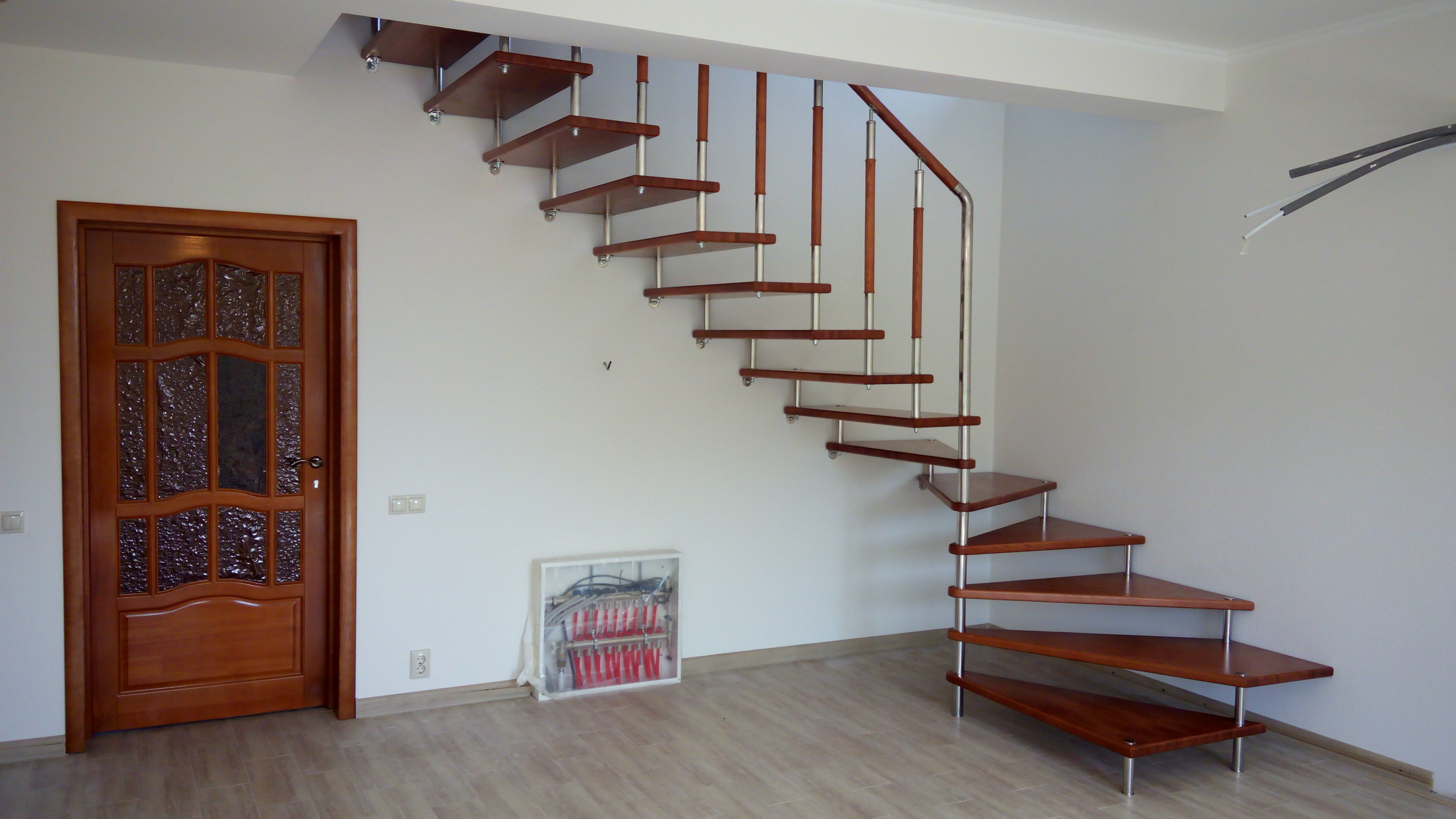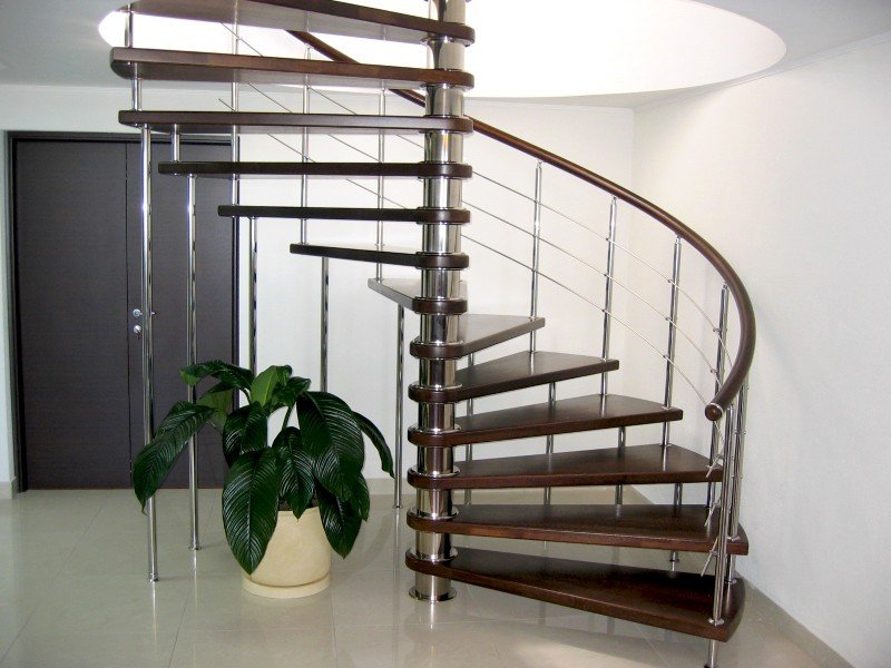 Todos los modelos de tornillo tienen un diseño similar. Se instala un soporte en el centro, y los escalones se montan a diferentes alturas con un cierto recorrido. Tales diseños ocupan poco espacio, son altamente decorativos.