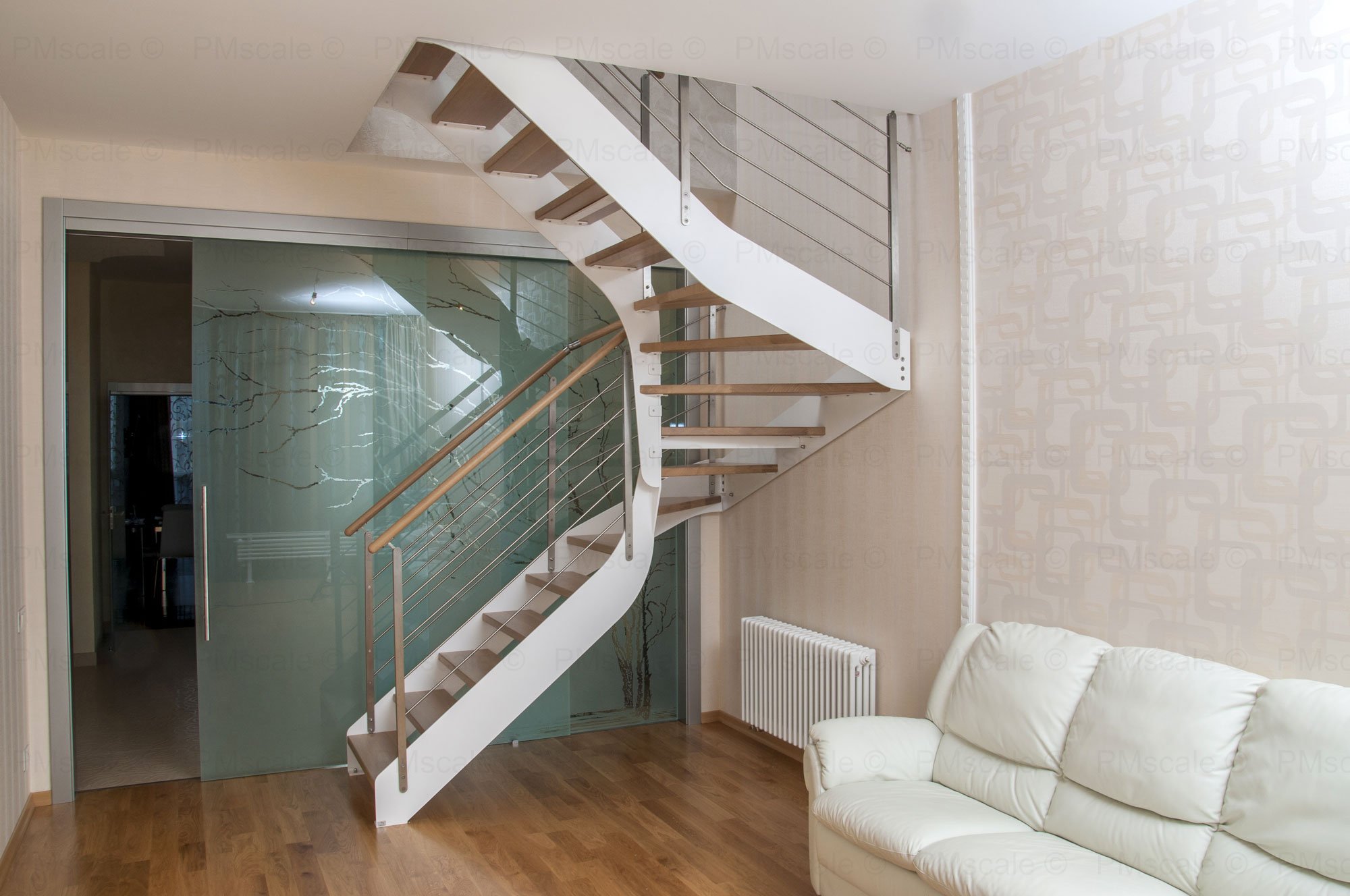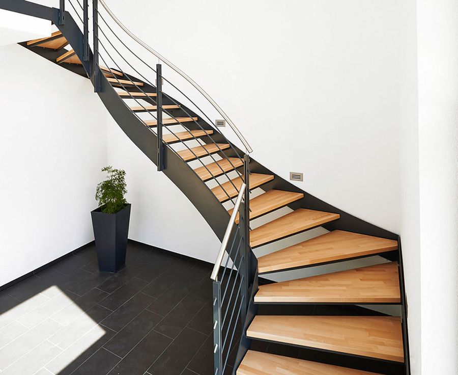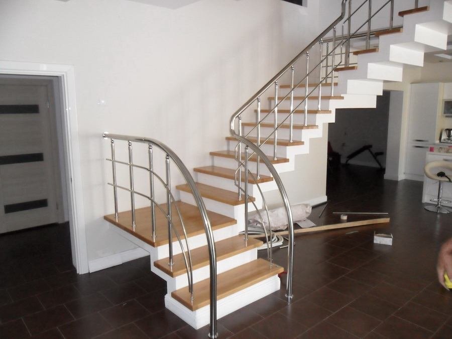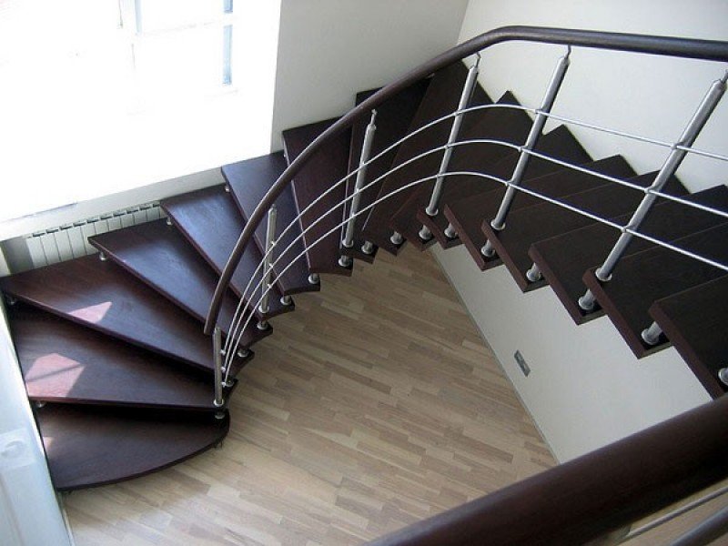 Fugitivos.Más a menudo, el método se utiliza para escaleras de caracol y giratorias. Los diseños tienen solo una cuerda de arco de forma geométrica compleja. Las huellas tienen la forma de un cono. Su borde interior está unido al soporte central, el exterior - a los tablones laterales.