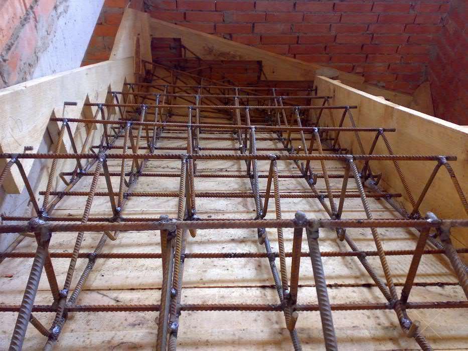 Triple Las vigas de apoyo se ubican en los bordes y en el medio. Es necesario instalar un kosour adicional para endurecer pasos largos, más de 2 metros.