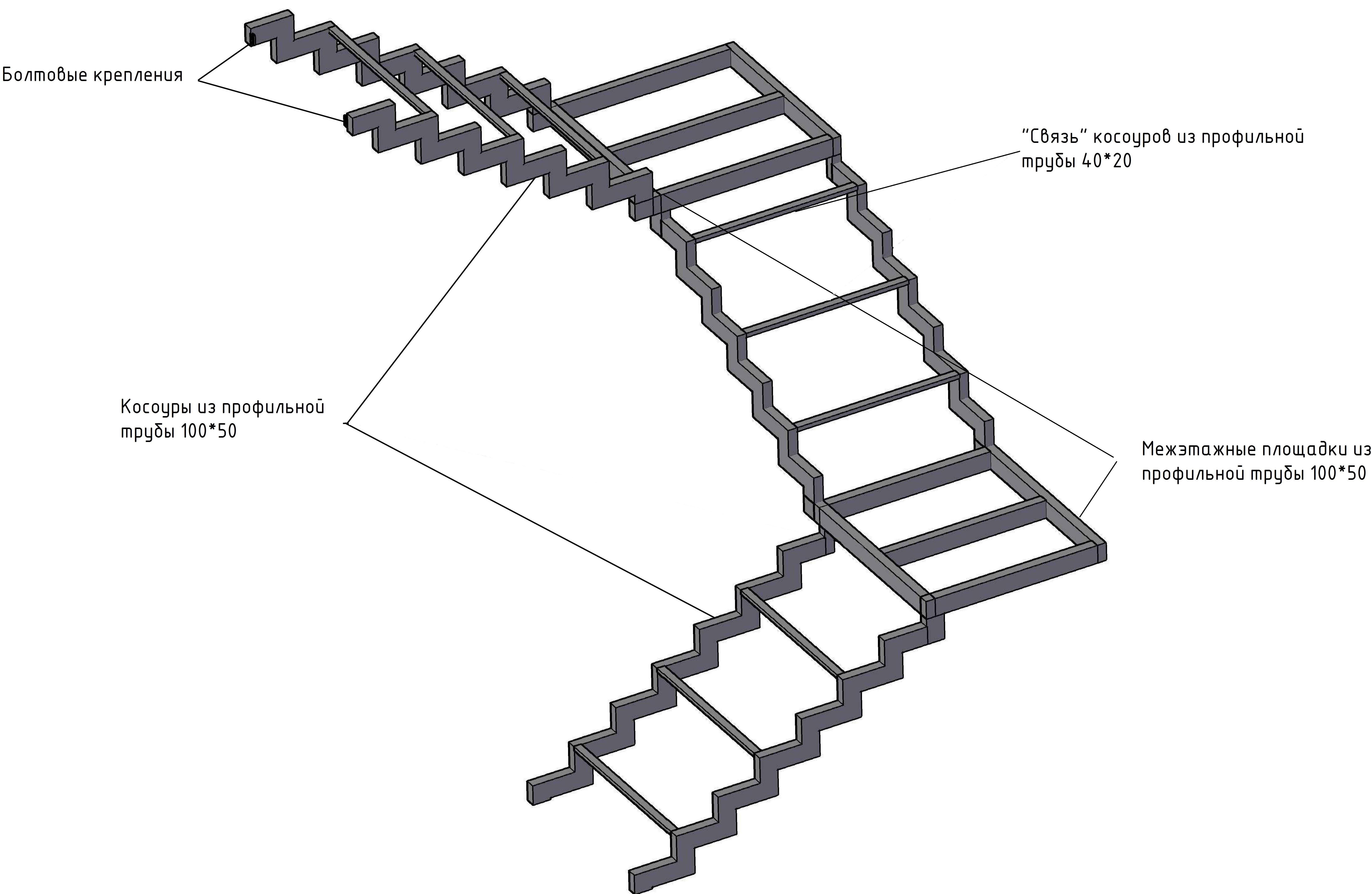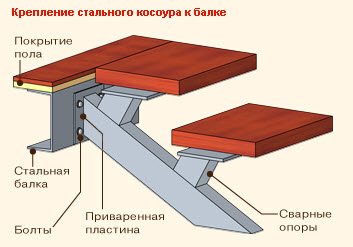 Para la fabricación de escaleras en el kosoura, es adecuado cualquier metal duradero con mayor capacidad de carga. La mayoría de las veces usan un canal, una tubería de acero. Conecte las piezas con soldadura eléctrica.
