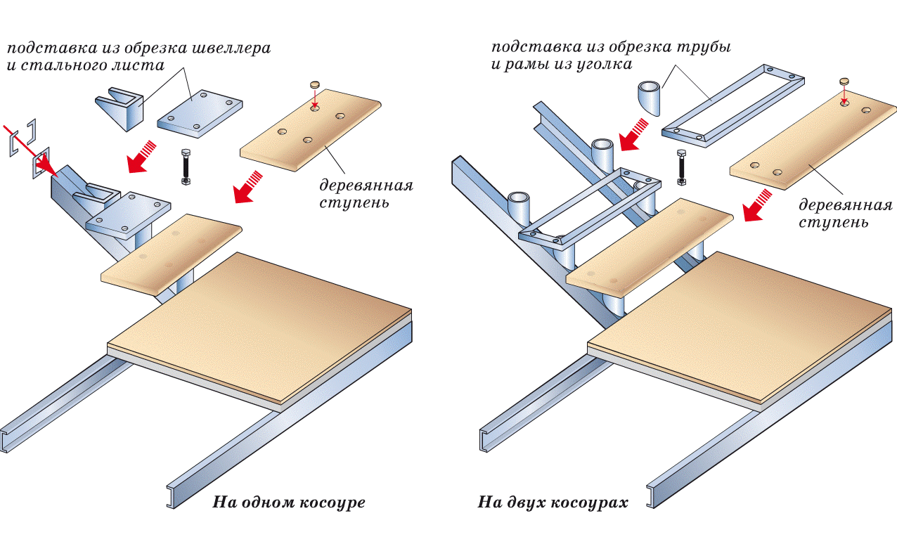 Para la instalación de tales estructuras, se utilizan dos tipos de sujetadores: vertical y horizontal. El primero se instala entre los escalones, el segundo en la pared.Las fortalezas de ambos tipos presentan requisitos especiales.