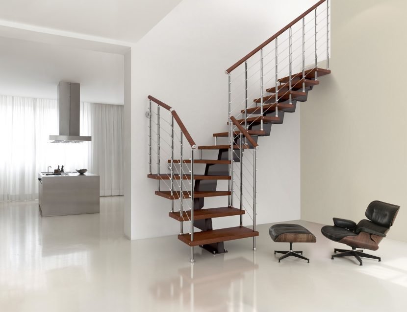 Dependiendo del ángulo de los tramos entre sí, las escaleras giratorias son de dos tipos principales: