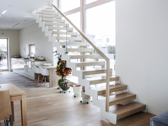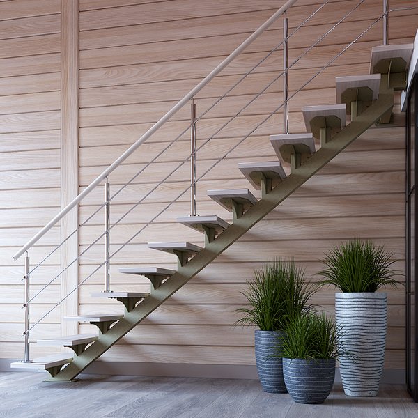 Se puede hacer una escalera simple y confiable en dos Kosoura en diferentes variaciones. Para cualquier modelo, la base será una viga guía que soportará toda la marcha.El sistema de elevación se montará sobre los elementos de soporte y se colocarán los escalones. El soporte puede ser recto o roto. La última opción es preferible, ya que cumple con todos los requisitos de seguridad. Para ensamblar dicho marco con sus propias manos, necesitará un equipo especial y la capacidad de realizar un dibujo preciso.