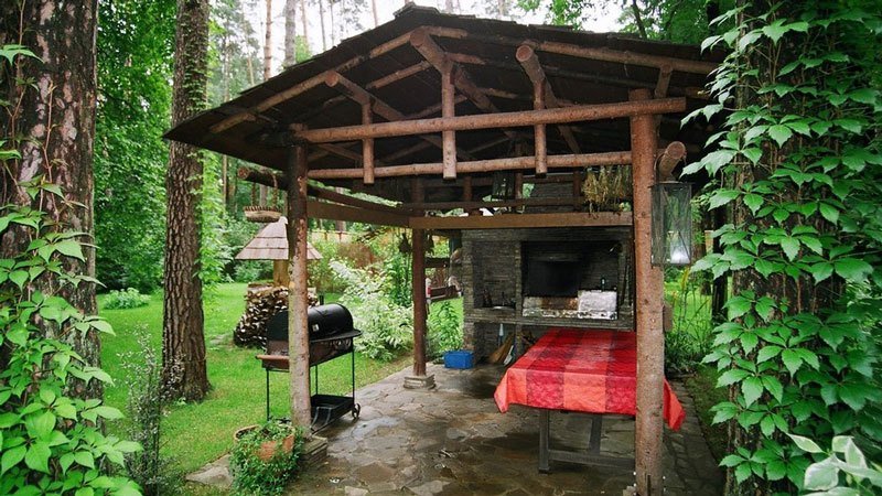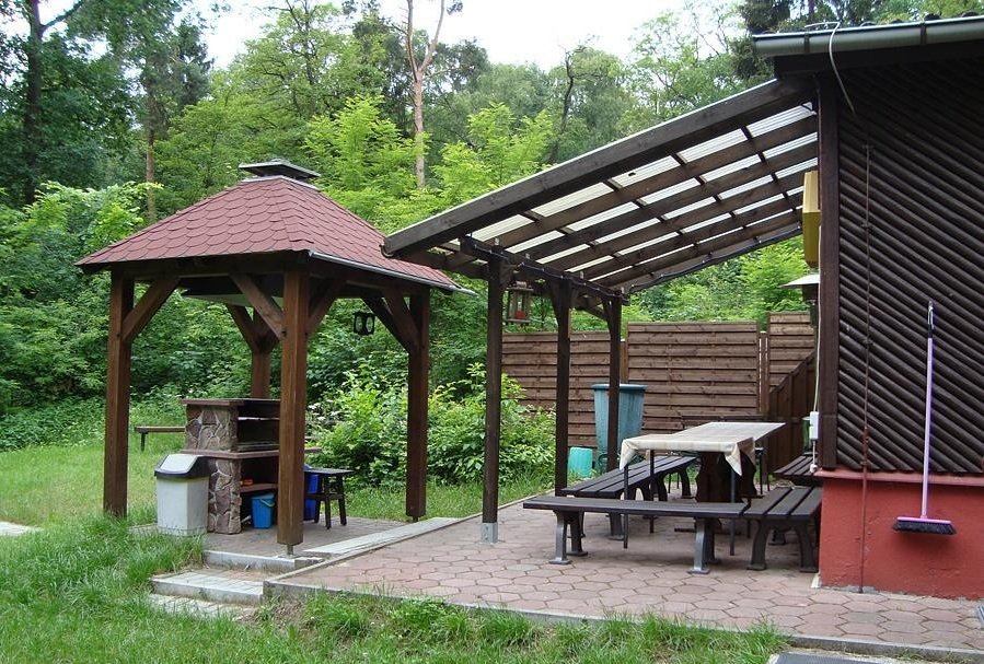 No debe levantar un dosel de madera sobre la barbacoa, una barbacoa, el árbol cerca del fuego puede calentarse y deformarse, incendiarse.