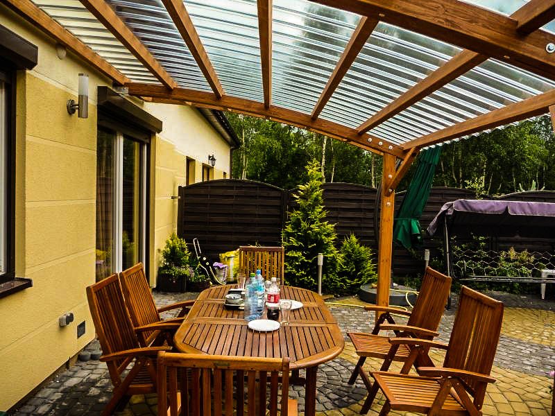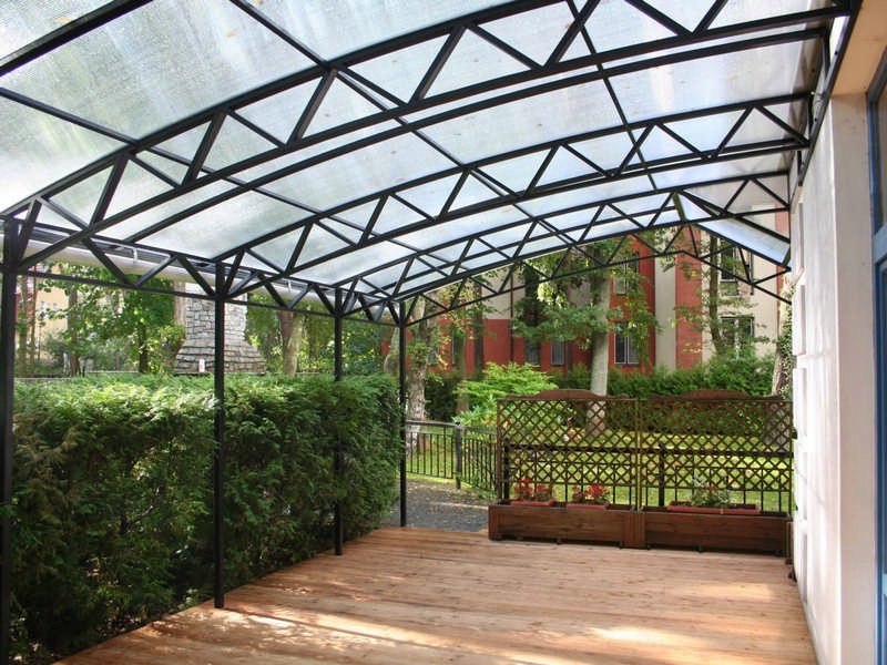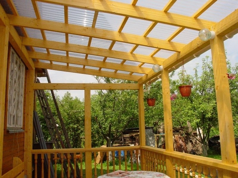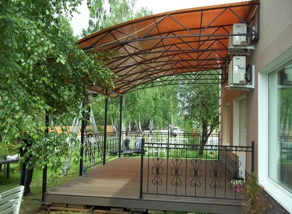 El mercado de la construcción ofrece una amplia variedad de techos utilizados en la construcción de toldos. Puede cubrir el techo con policarbonato, vidrio acrílico, plástico y otros materiales laminados. Cada tipo de piel tiene sus propias características. Para hacer esto, familiarícese con los recubrimientos más populares: