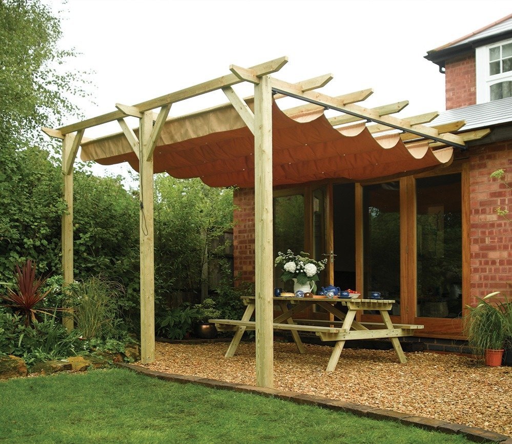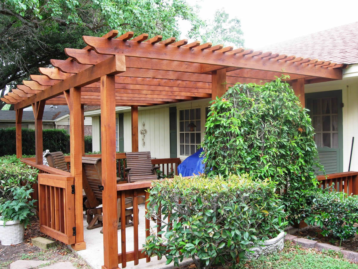 Para crear el enrejado, se utilizan diferentes especies de madera: roble, pino, abedul, alerce, otros. Como una superposición independiente no se utiliza. Para proteger el dosel, es mejor usar materiales hechos de madera, como tes, arado, ripias, ripias, husos. Sin embargo, tales diseños diferirán a un precio bastante alto.