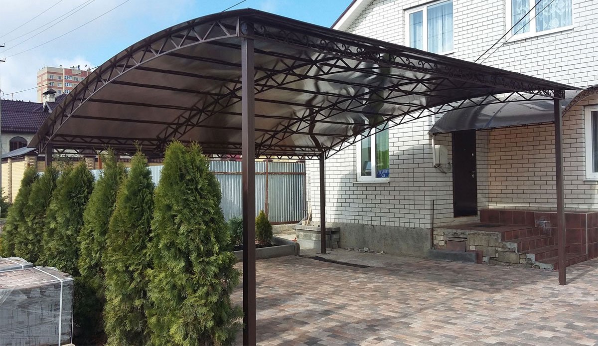 Directo. Se usa para proteger los vehículos de la precipitación. Se puede instalar en terrazas, servir como decoración adicional de la entrada a la casa;