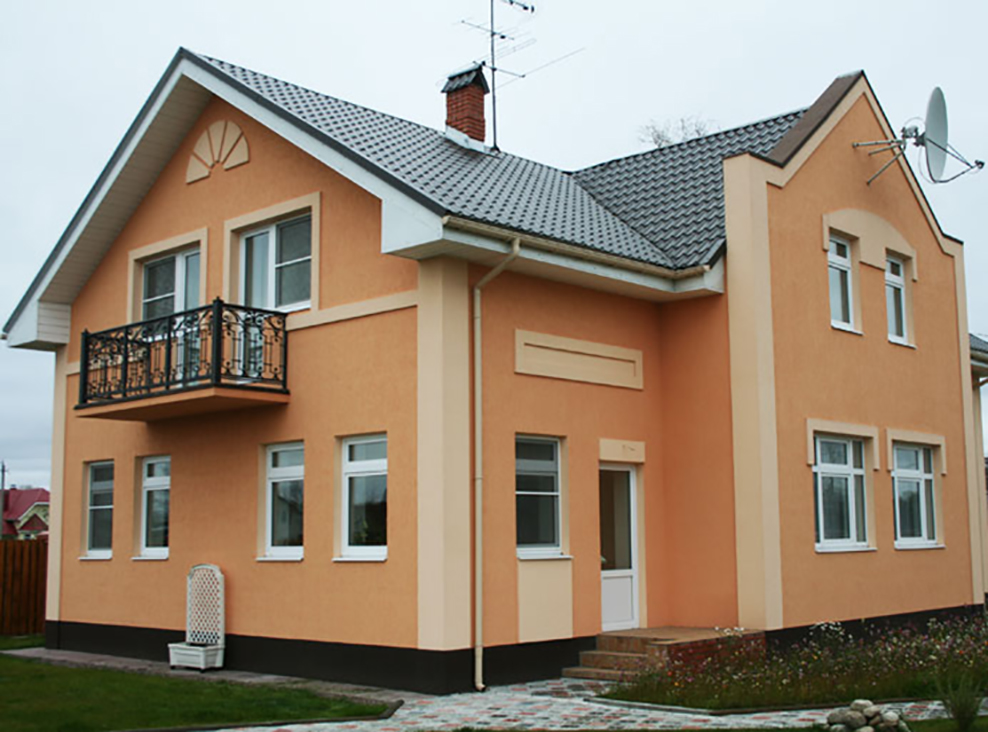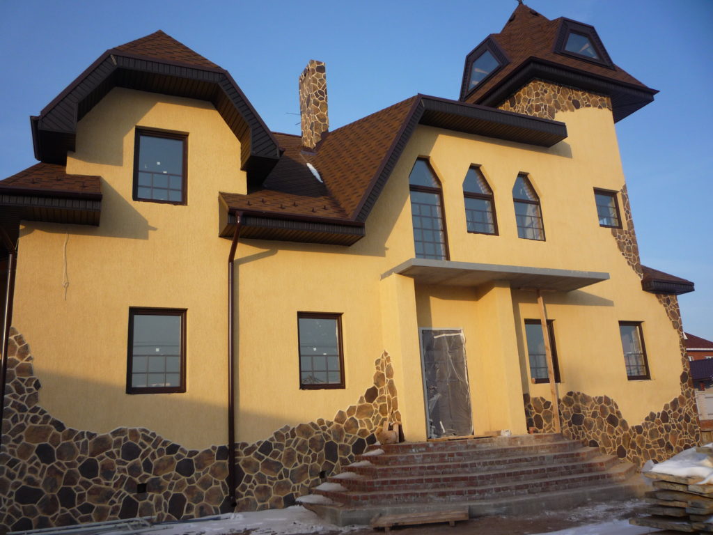 La composición de la solución incluye aproximadamente diez componentes diferentes, el principal es la resina acrílica. Es una mezcla de dispersión de agua lista para usar, no requiere amasado. Este tipo carece de la principal desventaja del yeso mineral: es flexible, por lo tanto, incluso después de que el edificio se contraiga, no aparecen grietas en las paredes. Esta es una opción ideal para aquellos que desean ahorrar en decoración y aislamiento de fachadas.
