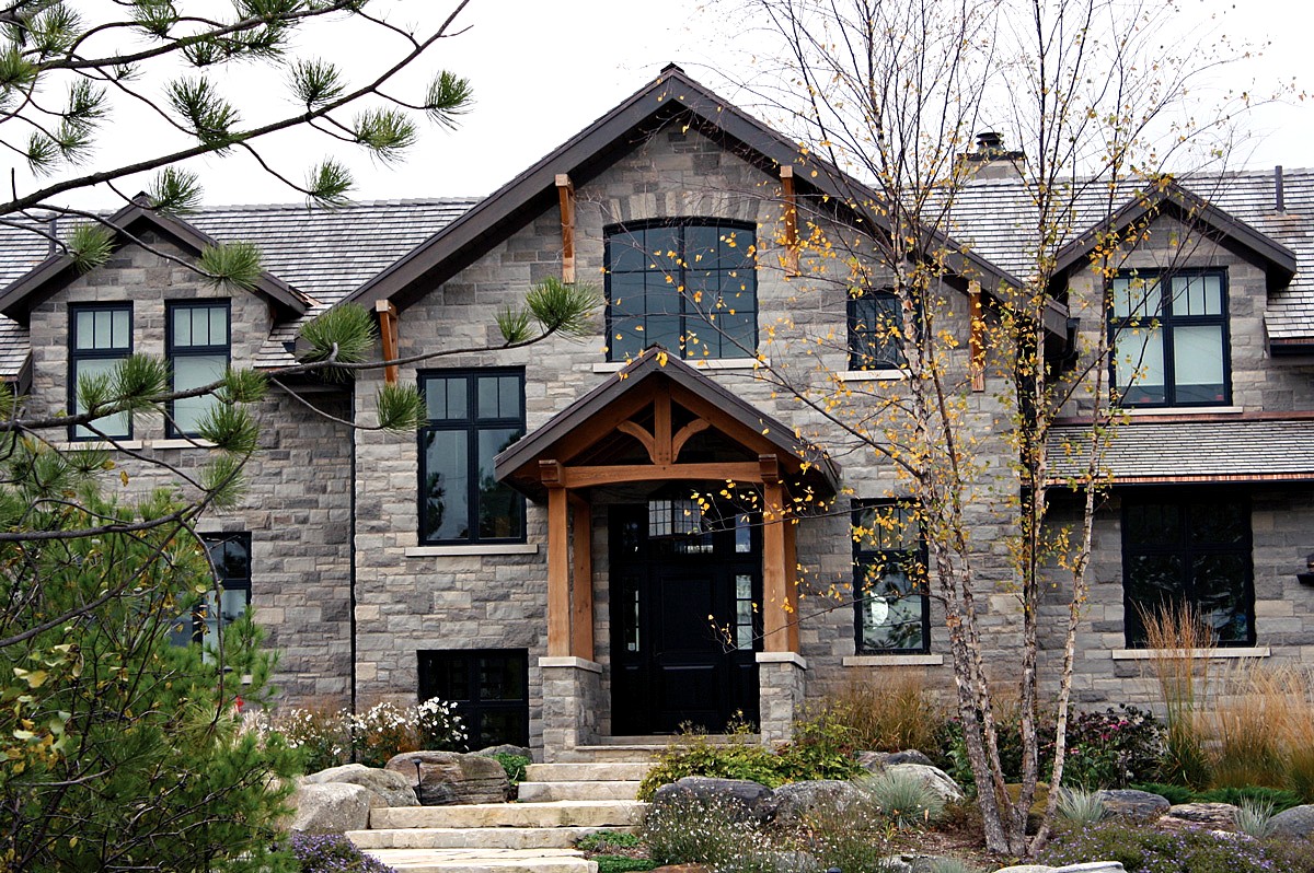 Una combinación en un formato liso o texturizado de piedra y madera;