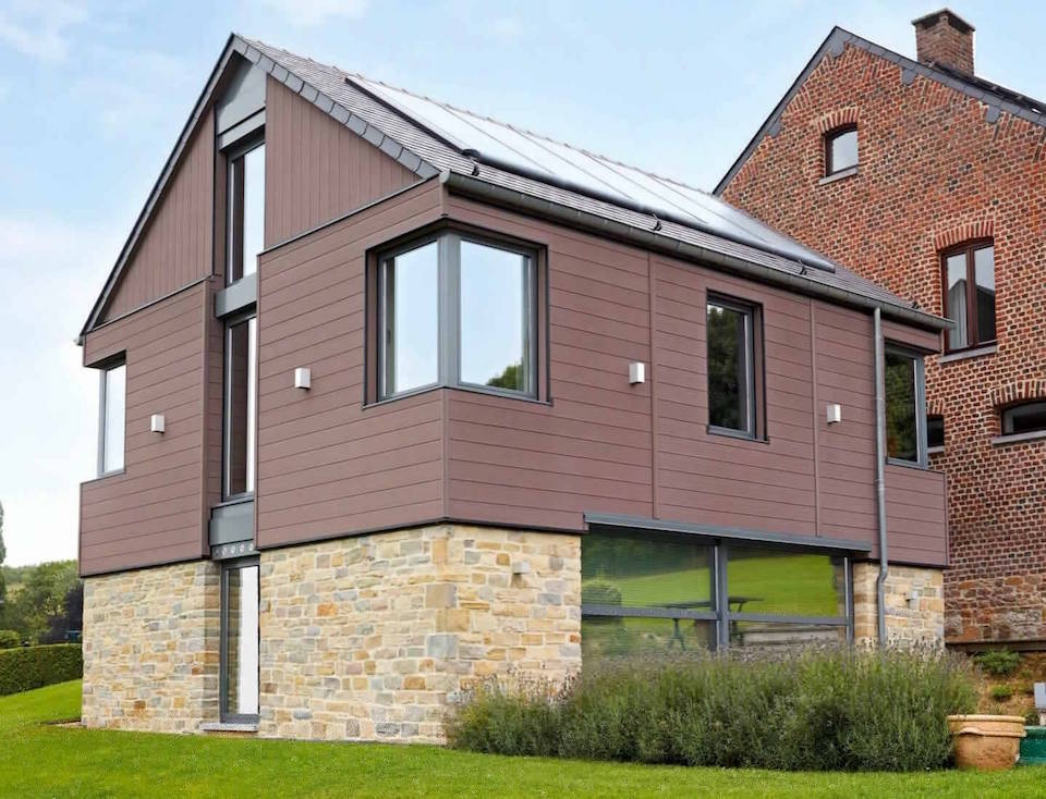 Un revestimiento de fachada caro, pero el más atractivo. Para que estos paneles sirvan durante mucho tiempo y se vean atractivos, se tratan con impregnaciones especiales antes de la instalación. El tablero de madera encolado es muy ecológico. Es absolutamente seguro para la salud humana y el medio ambiente. El recubrimiento proporciona un excelente intercambio de vapor, aumenta la eficiencia energética de la estructura.