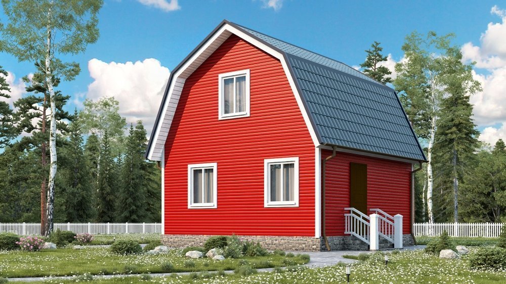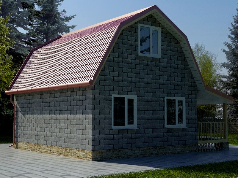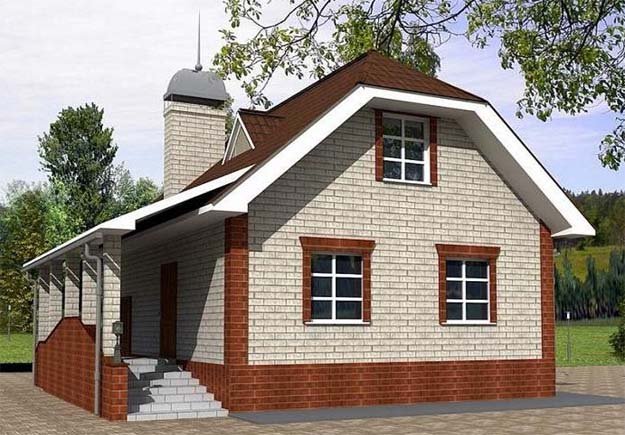 Mansard: esta es una especie de segundo piso, decorado con un techo cónico, aguilón, aguilón, de cuatro tonos. Por lo general, el área útil de dicha estructura es ligeramente menor que una de 2 pisos, al igual que el costo total. Los problemas surgen solo con el diseño interior, especialmente si hay numerosas ventanas en las pendientes.
