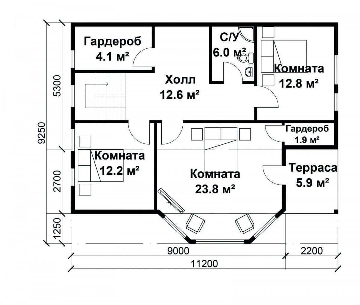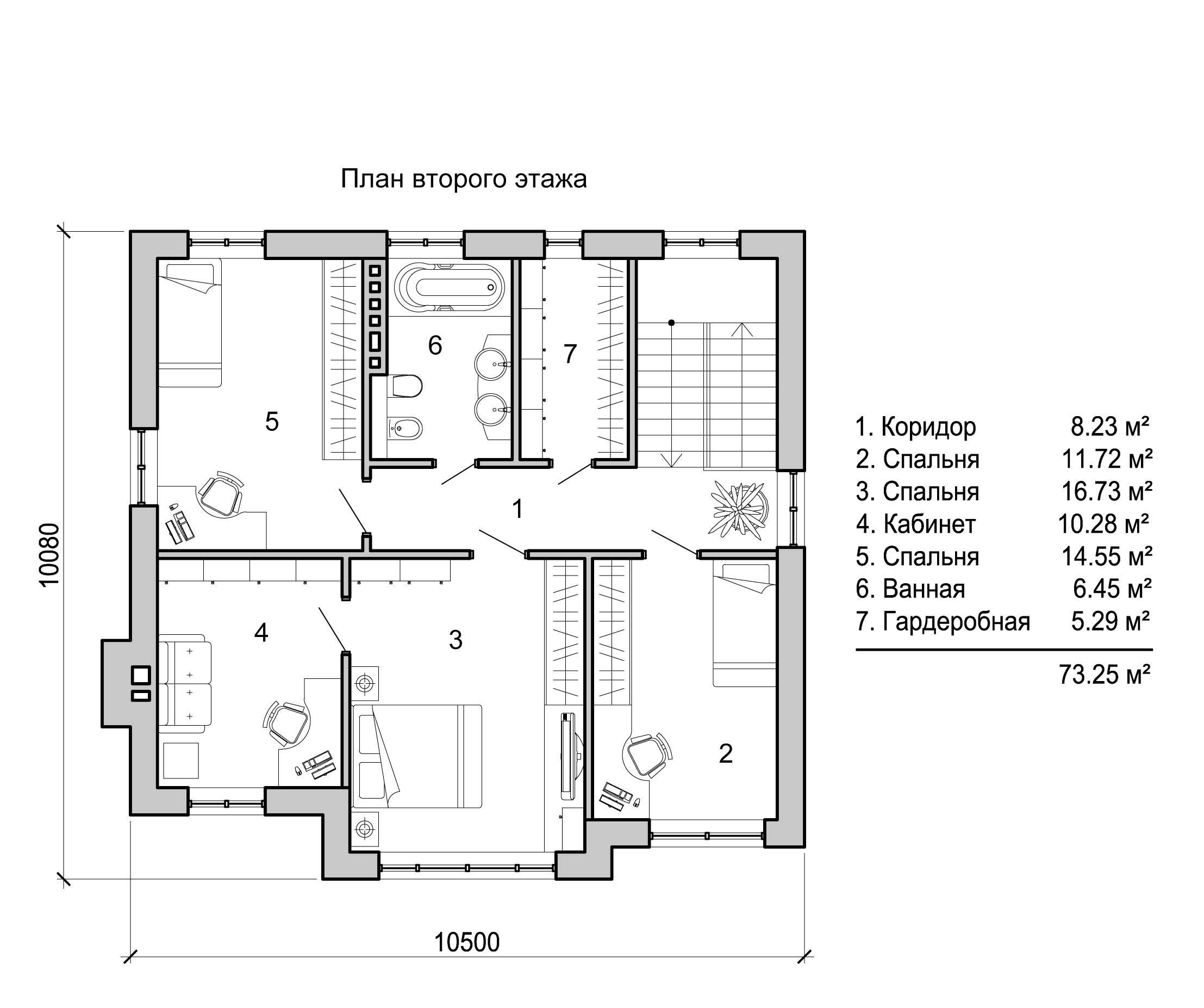 Cuando el proyecto se prepara de forma independiente, es necesario tener en cuenta el grosor de las paredes: puede ser de hasta 50 cm. Al principio, una lista de todas las habitaciones que se planea hacer es una sala de estar, cocina, dormitorio o incluso dos o tres pequeñas, separadas por tabiques, terraza, sótano, separadas La sala donde se ubicará la caldera que calienta el edificio. Es aconsejable hacer baños en cada piso, especialmente cuando hay más de tres o cuatro personas en una familia.