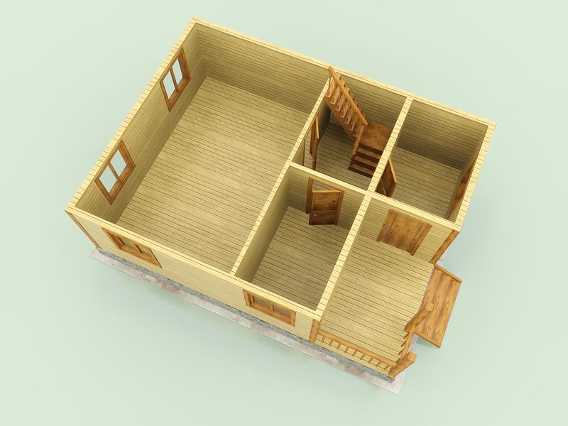 No haga que el cuarto de la cocina sea demasiado estrecho, esto es un inconveniente. El baño tampoco debe ser pequeño, especialmente si hay una lavadora allí. El sótano a menudo se hace debajo del piso; con él, la casa será más cálida, pero la base en este caso se hace más alta.