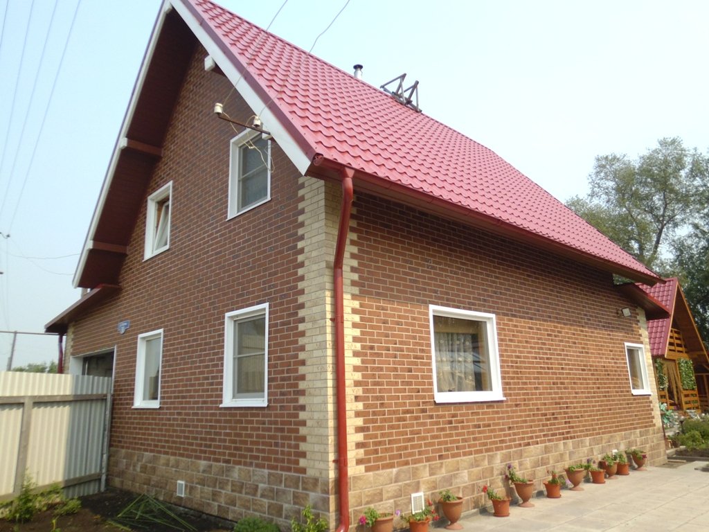 El revestimiento de vinilo o metal se adapta a casi cualquiera de los estilos existentes, desde el estado ruso hasta el neocolonial, desde el país hasta el moderno. El material imita fácilmente madera, piedra, ladrillo.
