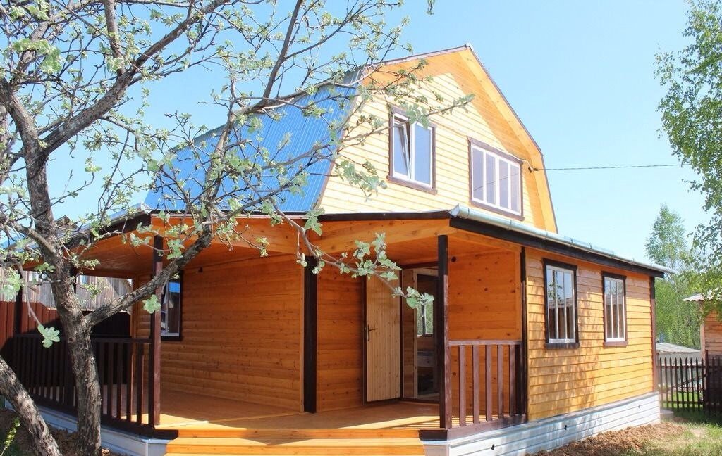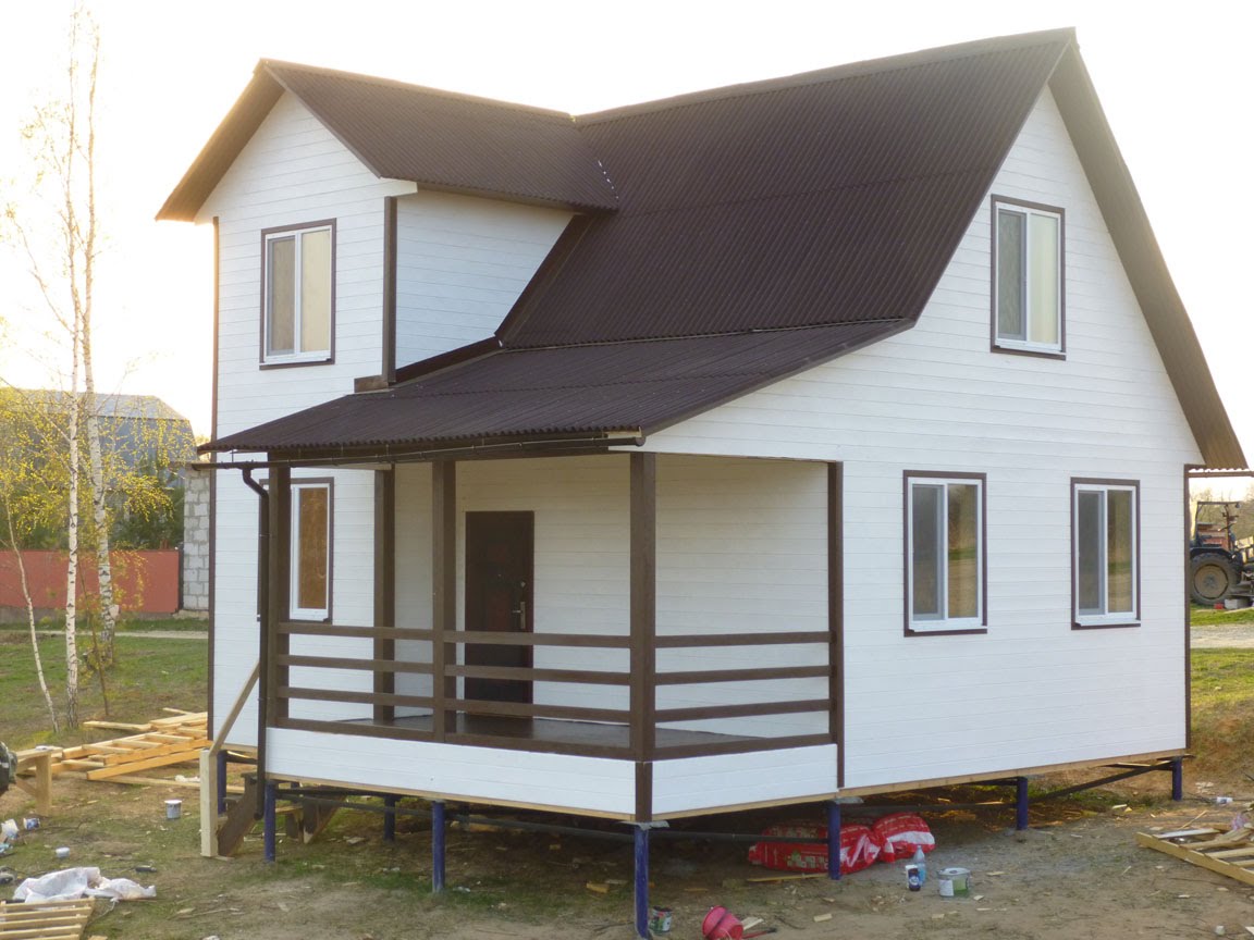 Para ampliar el espacio habitable, muchos adjuntan una terraza o terraza, erigen un segundo piso, lo que aumenta significativamente el área de la estructura a 96 m², utilizan el espacio del ático.