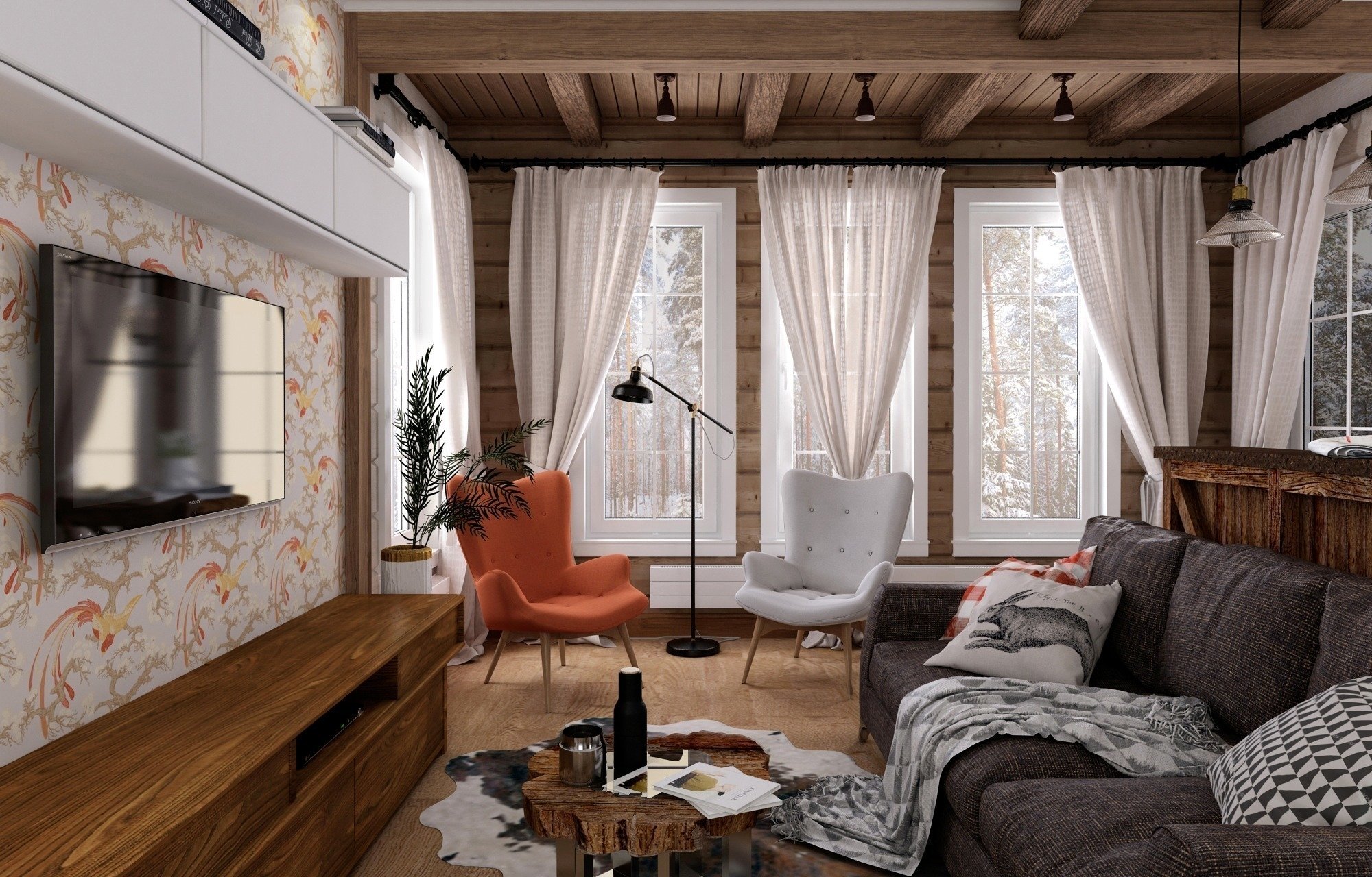 Un árbol La forma clásica de construir estructuras residenciales a partir de troncos. La madera natural le permite construir rápidamente una casa. Las materias primas son respetuosas con el medio ambiente y, debido a su higroscopicidad en las instalaciones, nunca faltan oxígeno. Dando preferencia a este material de construcción, vale la pena recordar el mayor riesgo de incendio.
